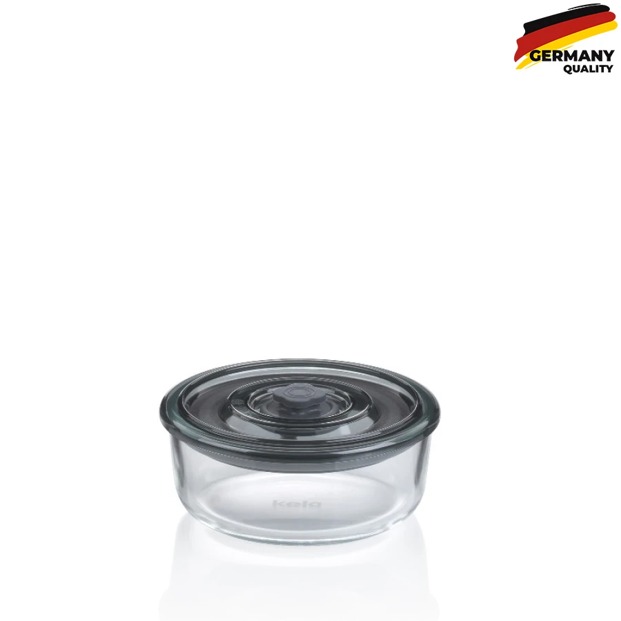 Круглий контейнер для зберігання продуктів KELA Aurelia об'ємом 0,17 л з боросилікатного скла з системою Push & Go ідеально підходить для соусів, підлив та зберігання невеликих порцій їжі. Ця універсальна банка для зберігання ідеально підходить для різних цілей та вражає своїм інноваційним дизайном та практичними функціями.
