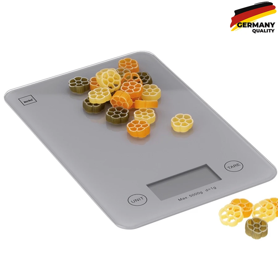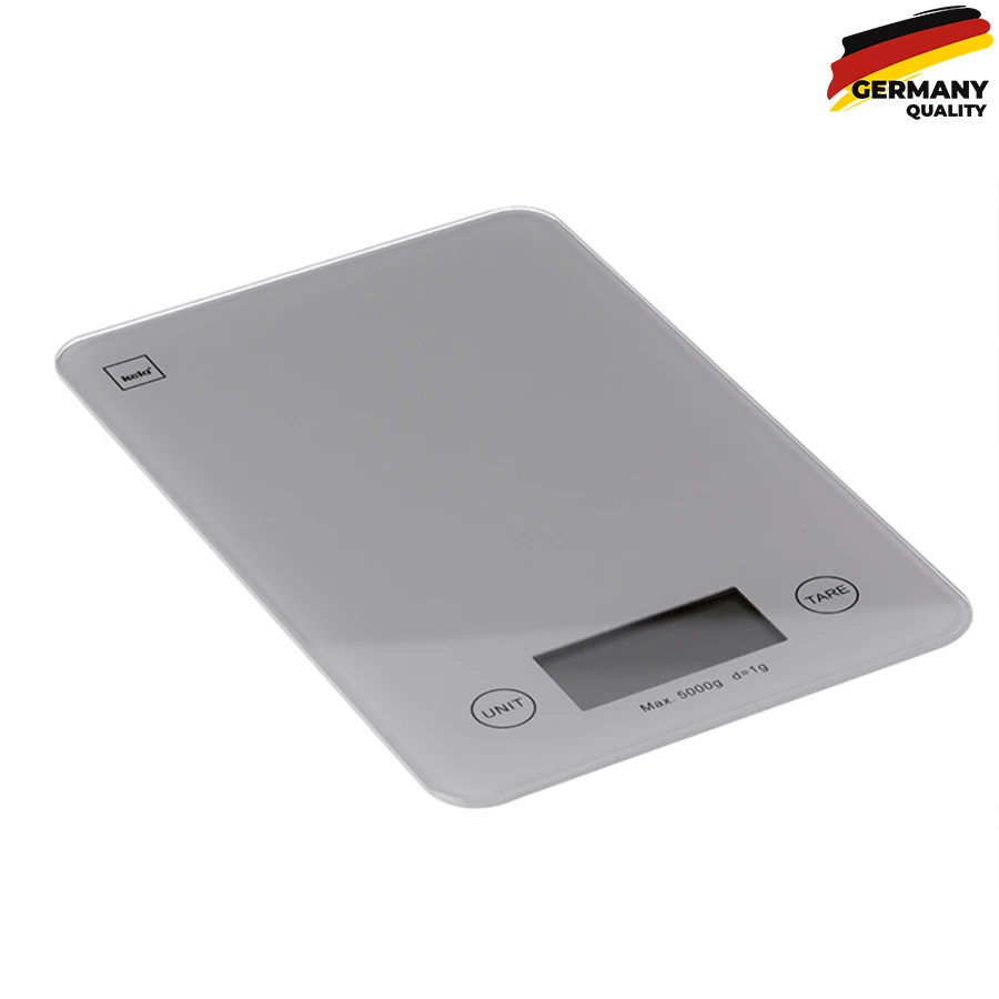 Качественные кухонные весы KELA PINTA серого цвета – это то, что вам нужно. Немецкое качество, стильный дизайн, современное крепкое стекло и пластик, тарокомпенсация, большой LCD дисплей, сенсорные клавиши, батарейка в комплекте, индикация перегрузки и заряда батареи, автоотключение. При незначительных размерах весы позволяют измерять продукты весом до 5 кг при минимальной погрешности в 1 г. Работают с тарой из любого материала. Платформу можно легко очистить благодаря изготовлению из стекла.