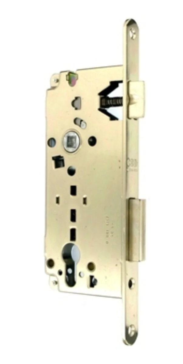 AGB Sicurezza B00851.50.03 — усиленный врезной замок под евроцилиндр формата PZ, рассчитанный на межкомнатные и служебные двери. Торцевая планка имеет ширину 22 мм, межосевое расстояние составляет 85 мм, отступ (backset) — 50 мм. Стальной корпус с латунным покрытием обеспечивает повышенную прочность, износостойкость и долгий срок эксплуатации.