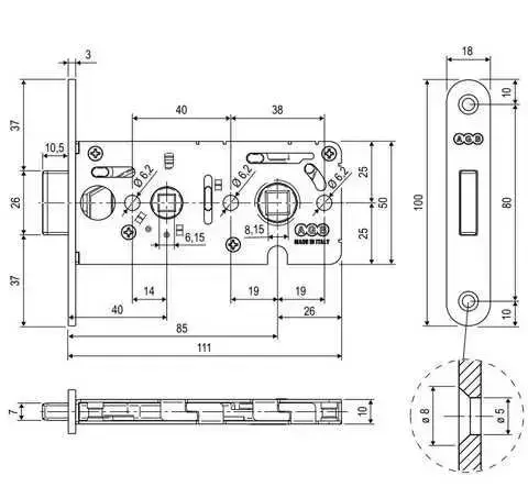 - Габариты лицевой части замка 18х100 мм