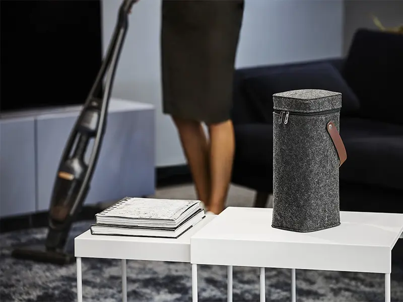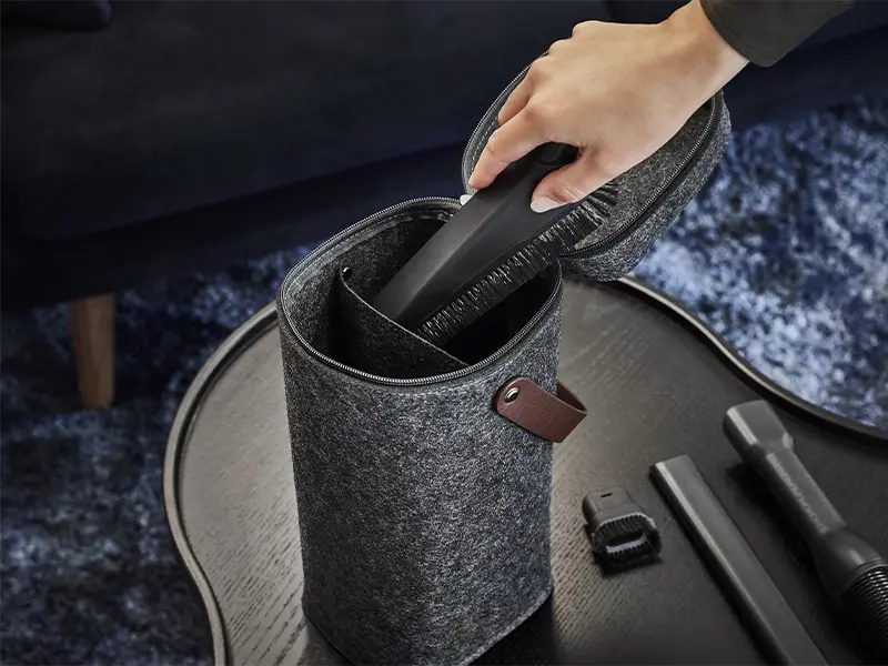Эффективна возможность хранения аксессуаров для пылесоса. Большое хранение. Удобен для хранения всех аксессуаров к пылесосу, пакетам S-bag, фильтрам и другим необходимым вещам. Достаточно вместителен, чтобы разместить большинство аксессуаров, которые находятся на полу, или занимают место в ящике. Премиальный скандинавский дизайн – идеально впишется в ваш дом. 100% шерстяной фетр. Экологический выбор – Сумка изготовлена из 100% натурального материала.