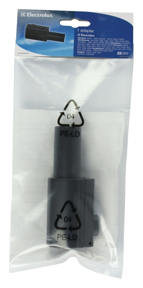 "Адаптер ELECTROLUX ZE 050 для пылесосов TweanClean, UltraOne, UltraSilencer. Этот специально разработанный адаптер позволяет подключать к пылесосам Electrolux, оснащенным овальной трубой с соединением AeroPro или Max-In диаметром 36 мм. Любые аксессуары компании Electrolux с подключением диаметром 32 мм, такие как насадки SpeedyClean, DustMagnet, AnimalKit, AutoKit, 3 в 1, TextileTurbo и т. д. А также другие щетки. Адаптер может быть использован в следующих пылесосах ELECTROLUX: Twin Clean, Oxy3System, Oxygen+, UltraOne, UltraActive, новый UltraSilencer, UltraOneMini и UltraPerformer. Упаковка содержит один адаптер ZE050 36 мм/32 мм.