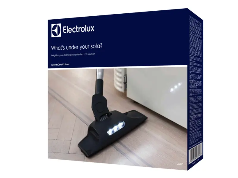 Запатентованная функция SpeedyClean Illumi позволяет четко видеть пыль в слабо освещенных местах. Насадка оснащена светящимися во время движения инновационными светодиодными лампами. Насадку легко перемещать, поскольку она гибкая и легко двигается по разным направлениям. Насадка работает как на коврах, так и на жестких полах.