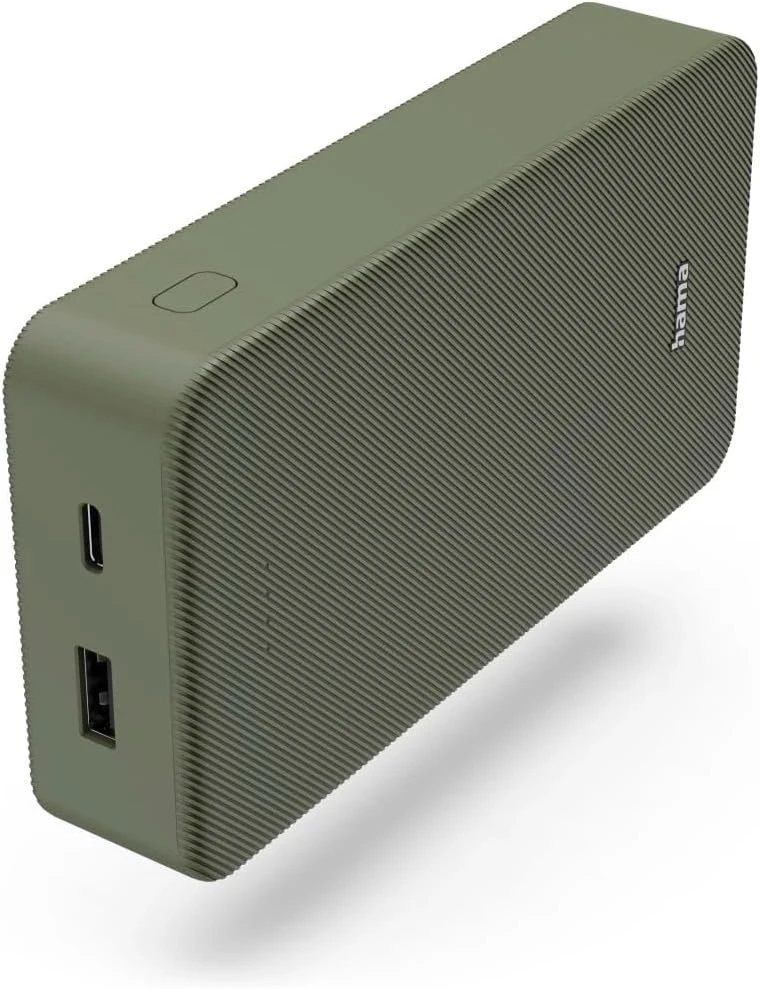 Hama Power Pack 20000 мА·год (00201716) — компактний літій-полімерний павербанк у зеленому корпусі з ємністю 74 Вт·год. Два розніми: USB-C (вхід/вихід 15 Вт) та USB-A (вихід 15 Вт) — дозволяють одночасно заряджати два пристрої. Підтримання Power Delivery 15 Вт (5 В / 3 А), вбудований захист від перезаряду, короткого замикання та перегріву. Легко зарядить смартфон 4–5 разів, планшет — 2 рази, Nintendo Switch — 3 рази. Найнадійніший та стильний резервний акумулятор від німецького бренду Hama.