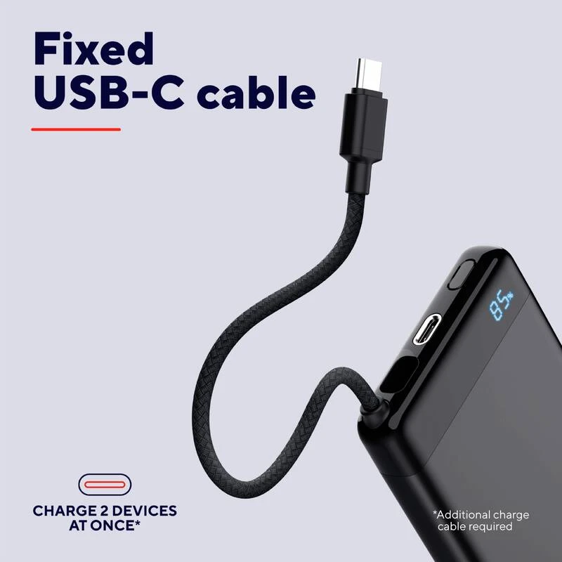 - Особенности можна заряджати 2 пристрої одночасно; вбудований кабель USB-C; безпечна конструкція для аеропорта;