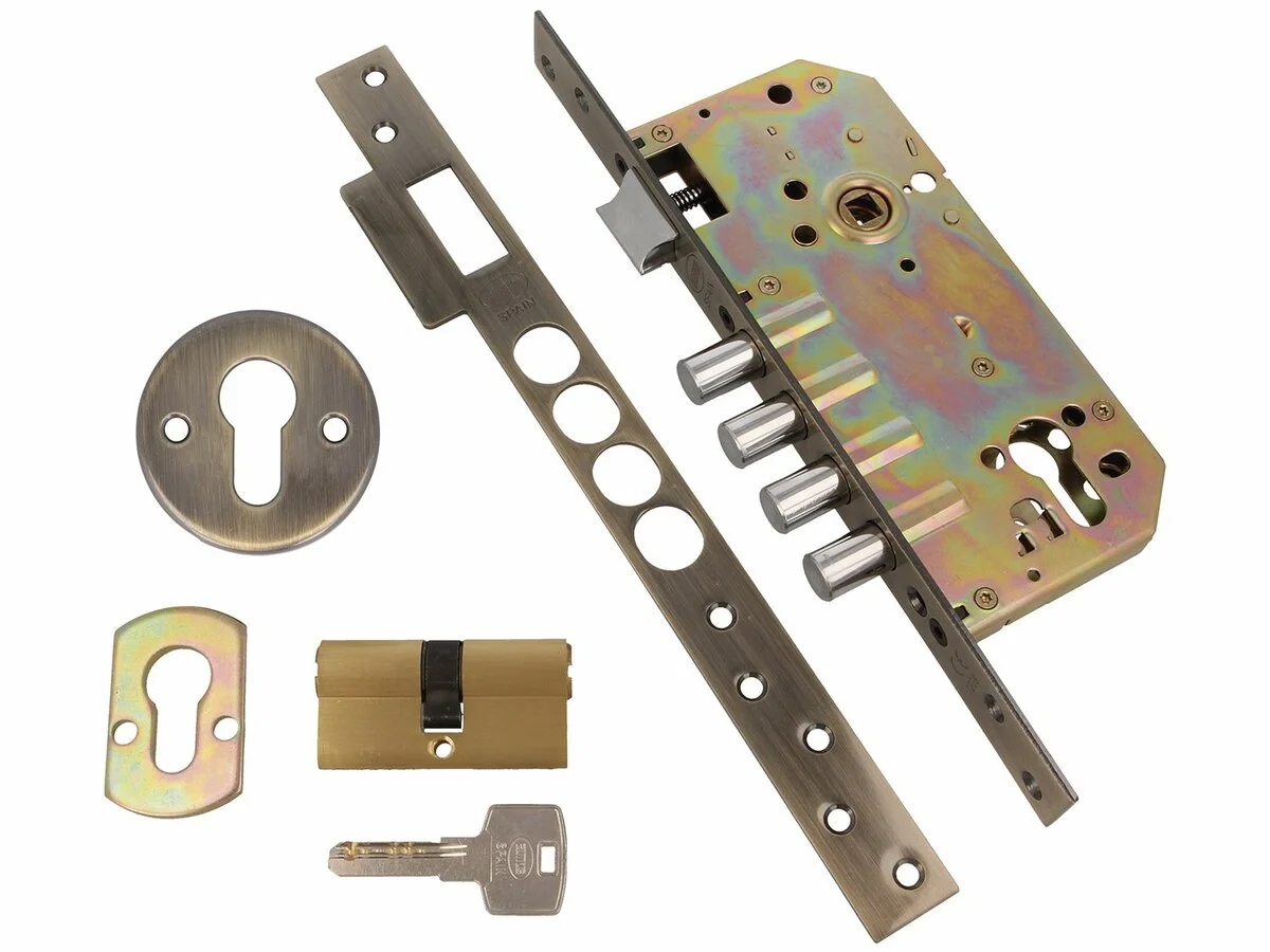 Совместим с ручками, петлями и накладками в цвете антик, бронза или латунь. Подходит для цилиндров евроформата 85 мм и броненакладок, усиливающих защиту. Цилиндр можно заменить без демонтажа корпуса замка, что удобно при обслуживании.