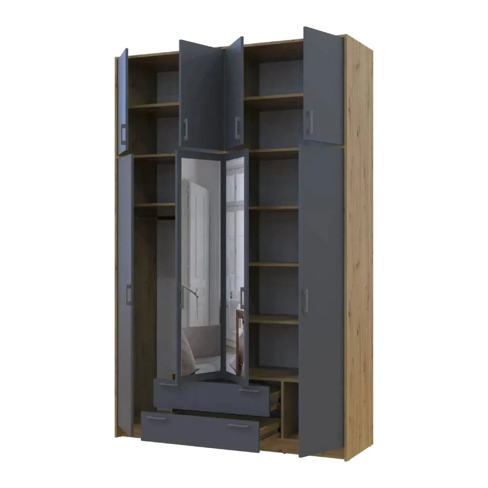 Антресоль висока Doros Ронді Дуб Артизан/Графіт 4 ДСП 160х52х65 (DRS-011907)