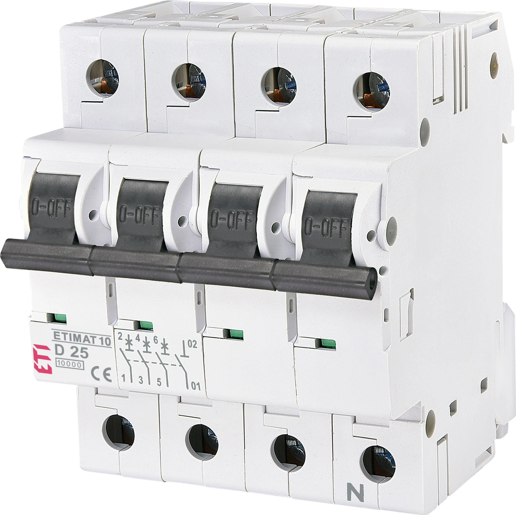 Автоматичний вимикач ETI, ETIMAT 10 3p+N D 25А (10 kA)