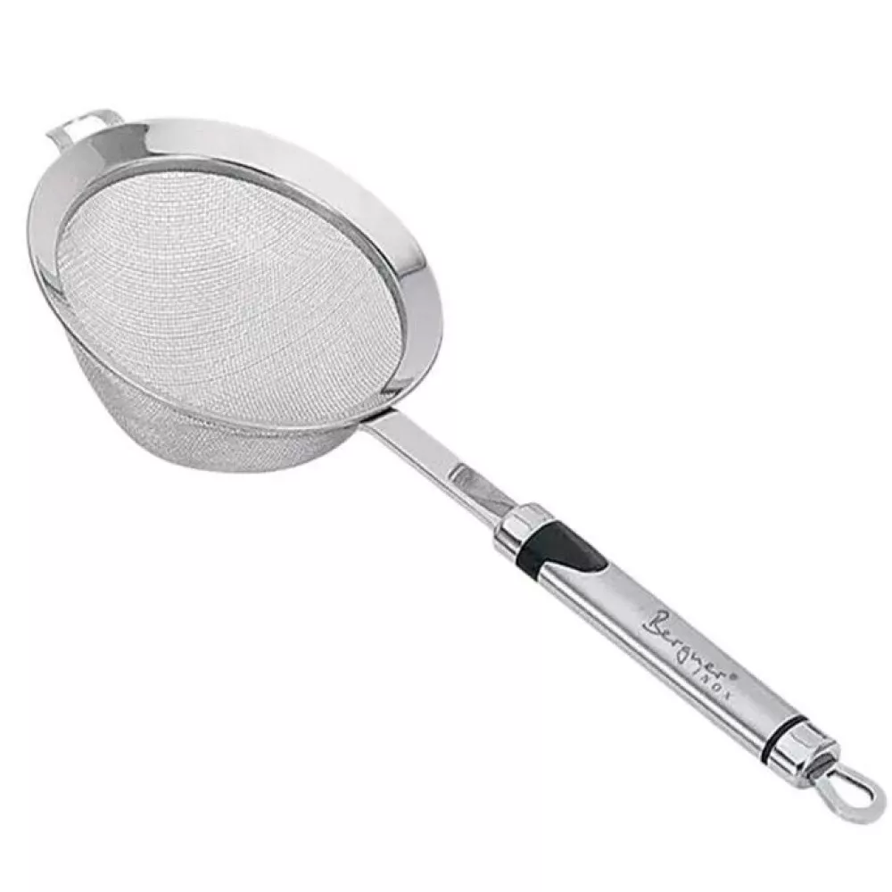Сито Berner Gizmo (BG-3269) виготовлено з нержавіючої сталі і є універсальним інструментом на кухні. З його допомогою можна просіювати борошно, посипати десерти цукровою пудрою або какао, а також використовувати як шумівку.
