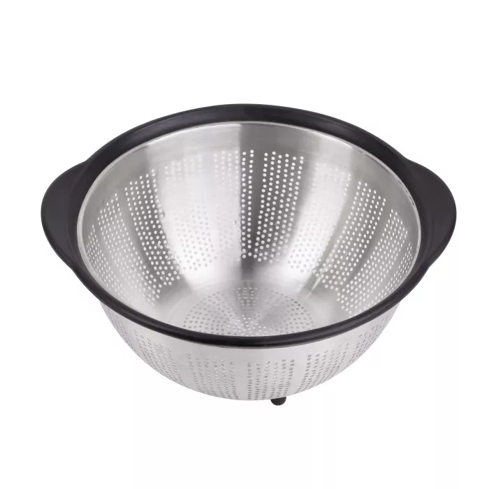 Друшляк MasterPro Foodies collection объемом 2,83 л — это надежный и удобный кухонный инструмент, сочетающий в себе современный дизайн и практичность. Изготовлен из высококачественной нержавеющей стали и силикона, обеспечивает долговечность и стойкость к коррозии. Диаметр 20 см делает его идеальным для сливания воды после приготовления макарон, овощей или риса. Черный и металлический цвет придает элегантности этому инструменту, что делает его стильным дополнением к любому кухонному интерьеру. Благодаря использованию силикона, дуршлаг не скользит по поверхностям, обеспечивая безопасность при использовании. Его можно мыть в посудомоечной машине, что упрощает уход за ним. MasterPro — это качество, на которое можно положиться.]]>
