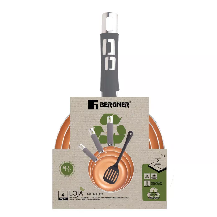 BGEU-5582 Набір сковорідок з лопаткою Bergner Loja reeco, 18/22/26 см (BGEU-5582)