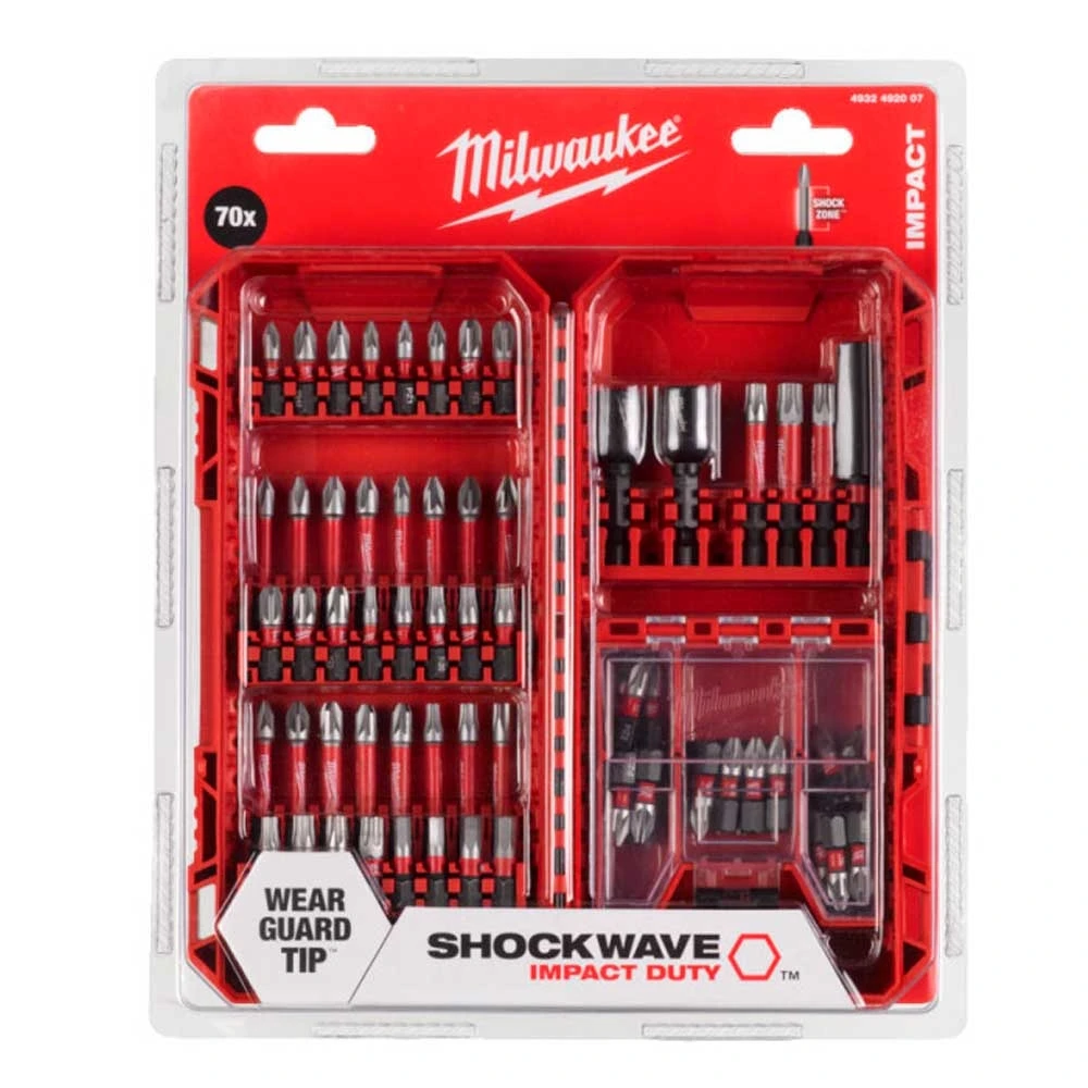 Набір біт Milwaukee Shockwave 70 шт створений для інтенсивної роботи з ударними шуруповертами. Спеціальна конструкційна сталь і технологія SHOCK ZONE підвищують стійкість до ударних навантажень. Лазерно загартований наконечник забезпечує точну посадку та зменшує зношування. Широкий вибір профілів дозволяє виконувати різні монтажні завдання. Усі елементи зручно зберігаються в міцному кейсі.