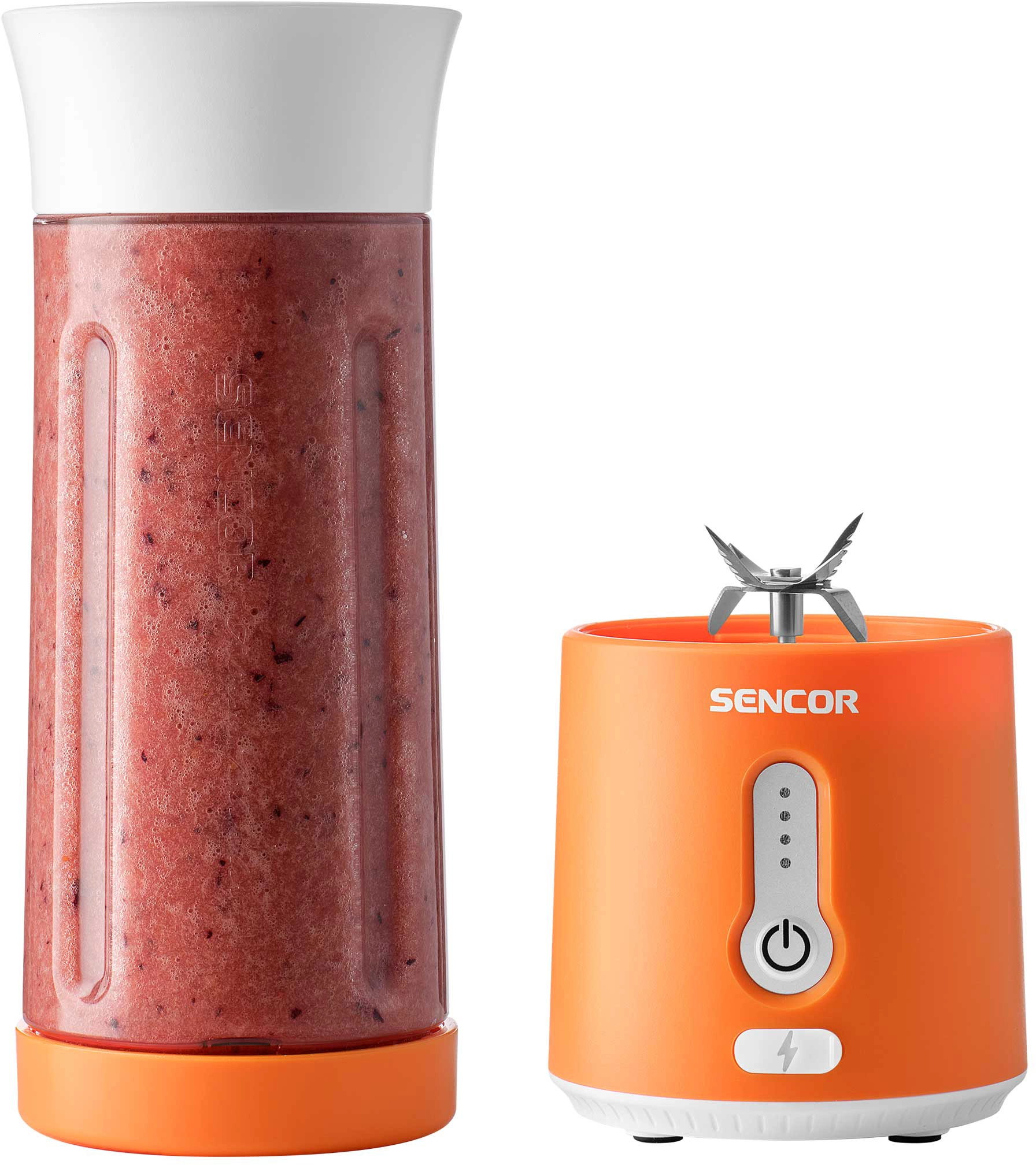 Блендер Sencor портативний для смузі 150Вт, чаша-500мл, USB-C, біло-помаранчевий