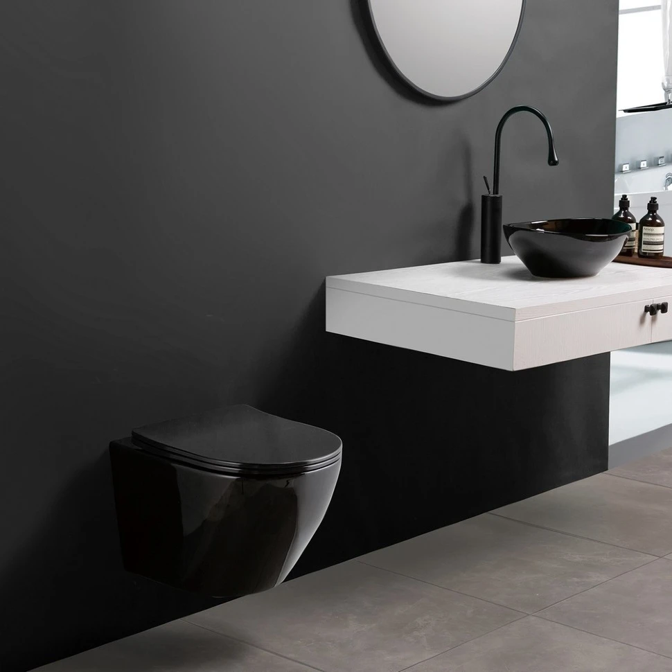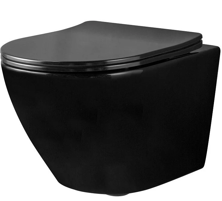 чаша унітазу Rea Carlo Mini Flat black gloss без обідка, сидіння дюропластів повільно падаюче (REA-