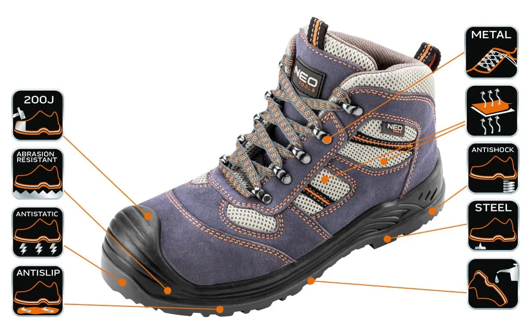 Черевики робочі Neo Tools, замш, ударопоглинання, антипрокол, сталевий підносок, S1P SRC, СЕ, р.45(3