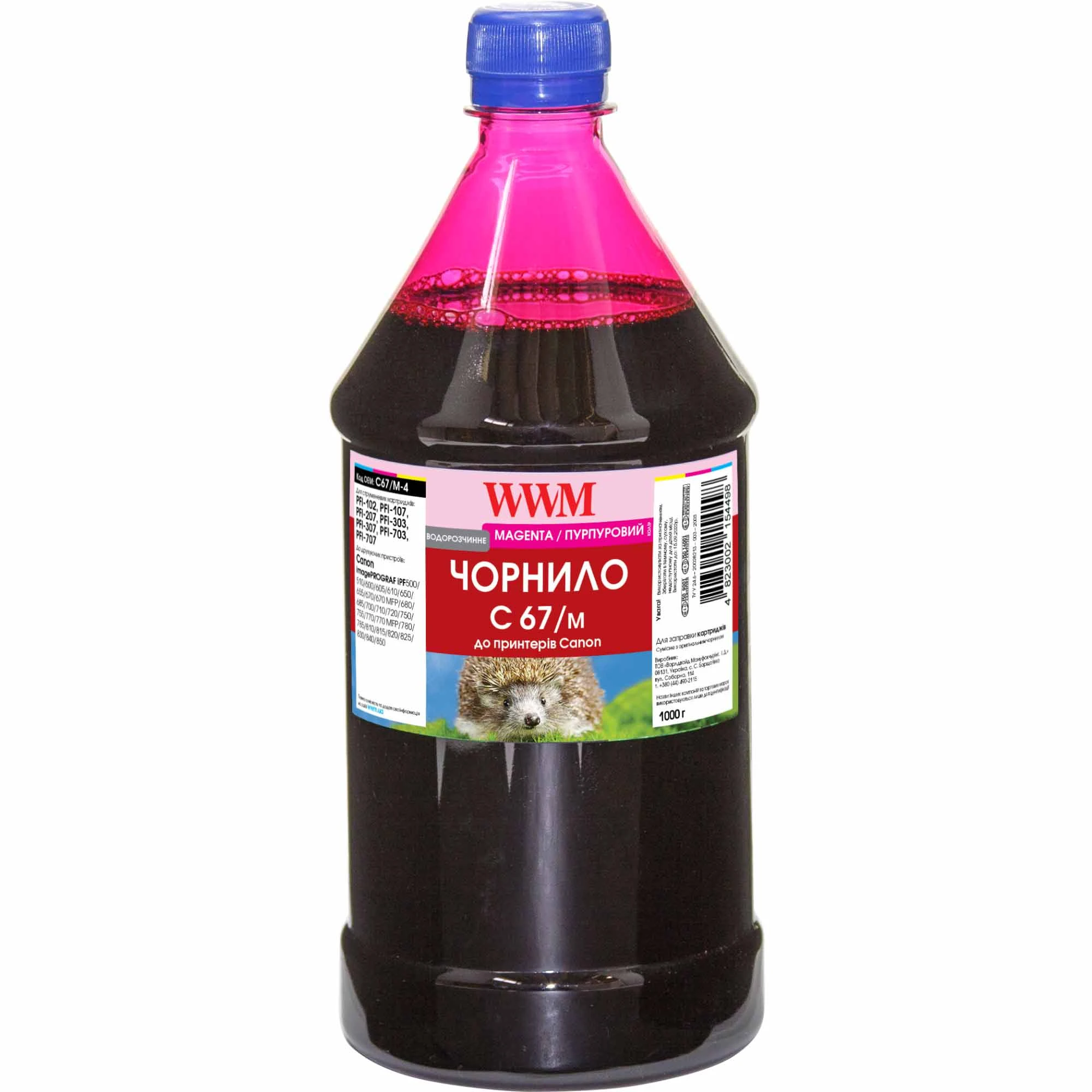 Чорнило WWM для Canon PFI-107M 1000г Magenta водорозчинне (C67/M-4)