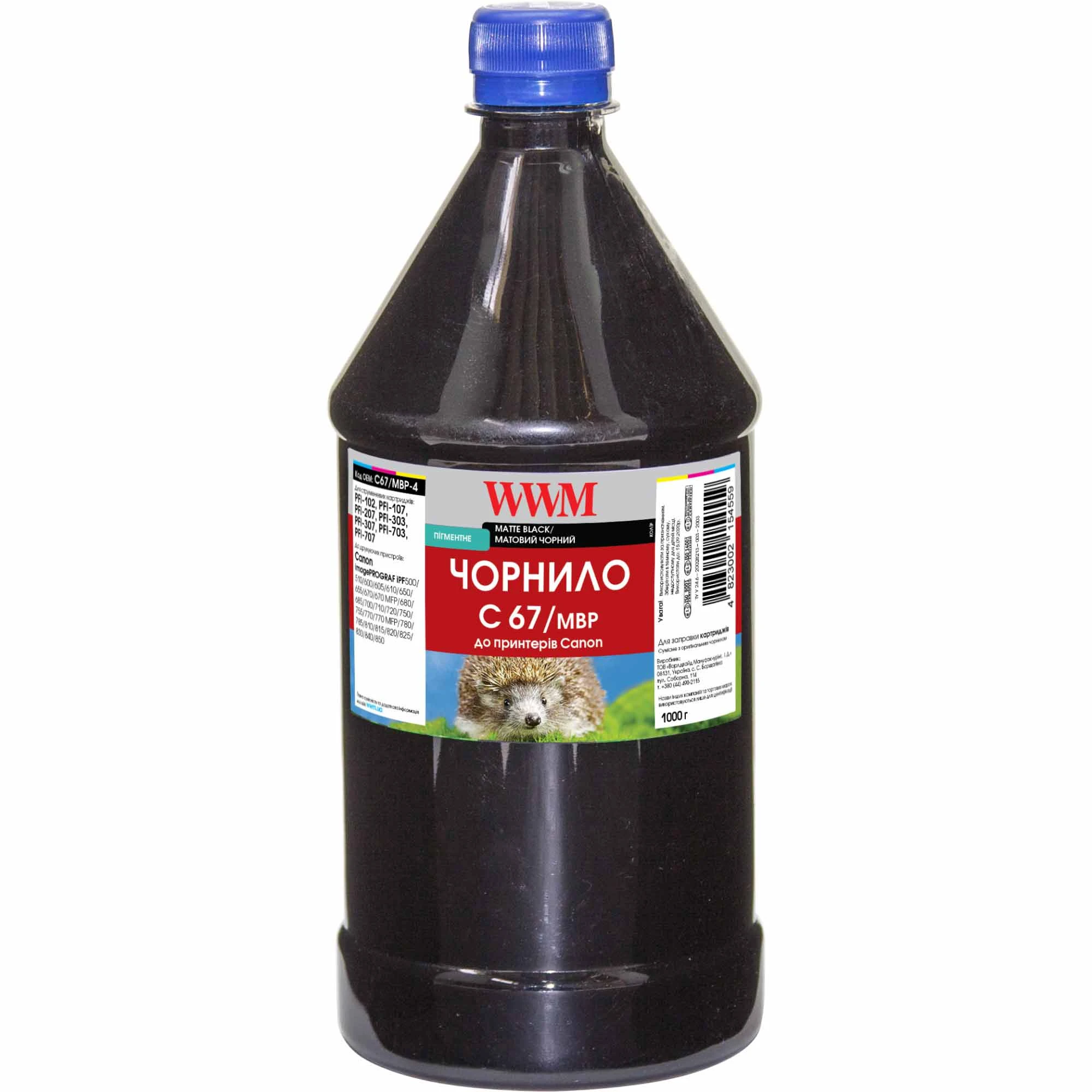 Чорнило WWM для Canon PFI-107MBk 1000г Matte Black пігментне (C67/MBP-4)