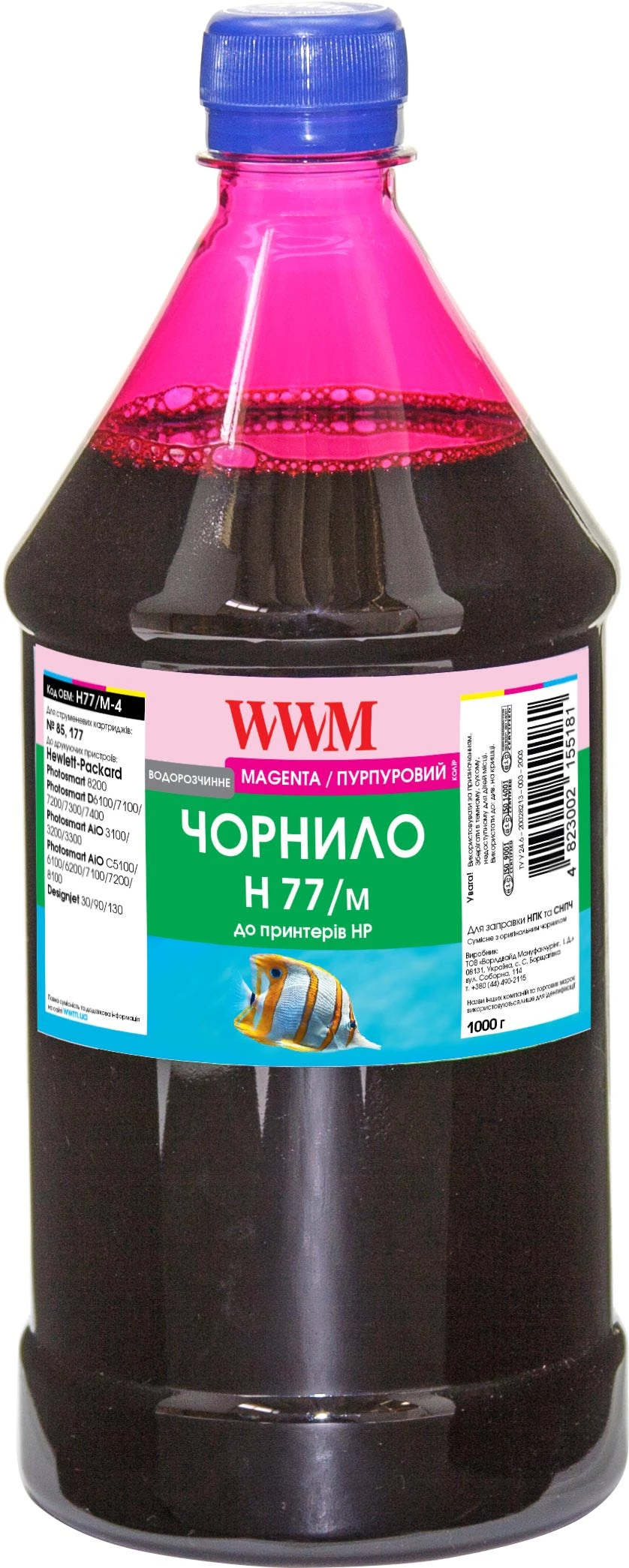 Чорнило WWM для HP №177/85 1000г Magenta водорозчинне (H77/M-4)