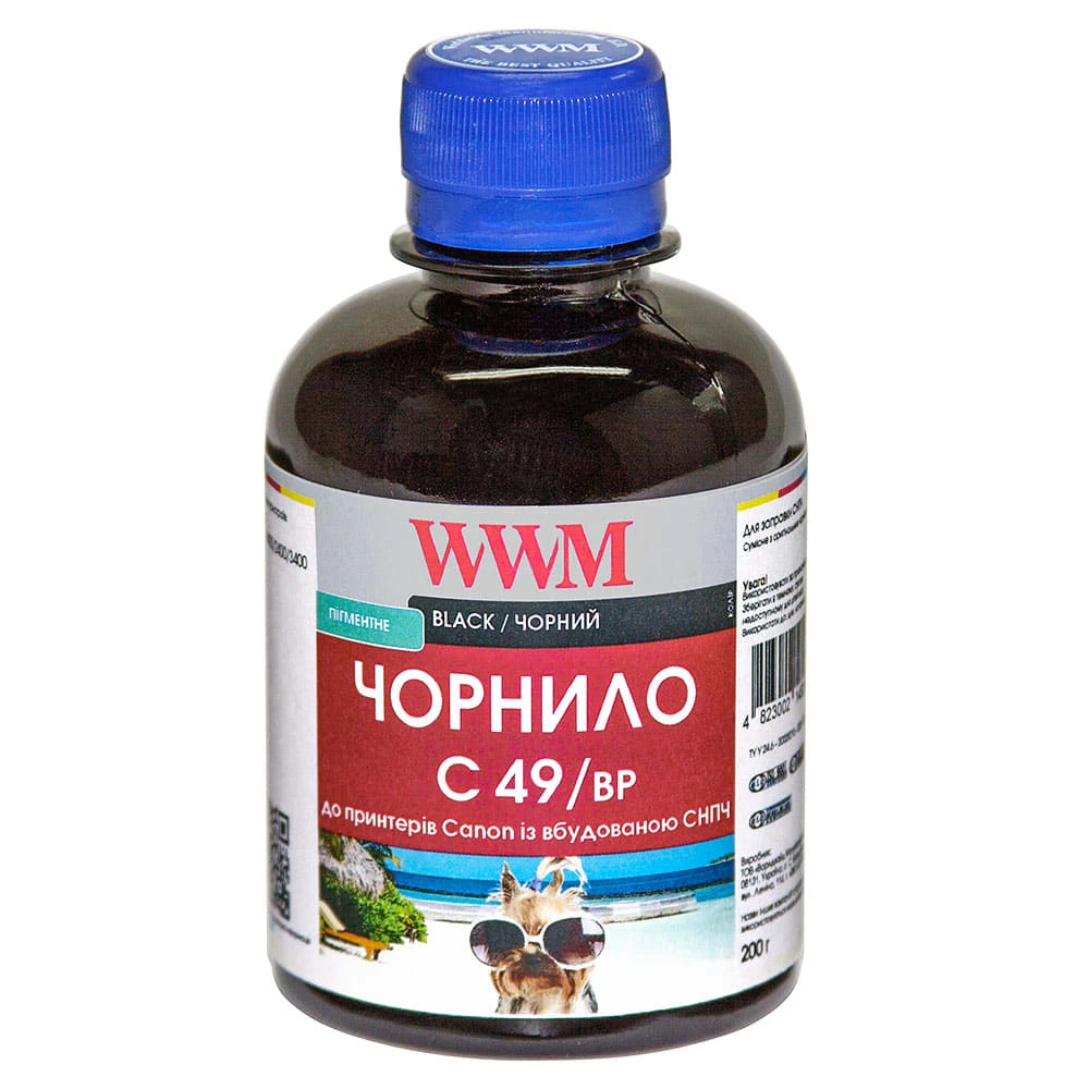 Чорнило WWM GI-490BK для Canon Pixma G1400/2400/3400 200г Black пігментне (C49/BP)