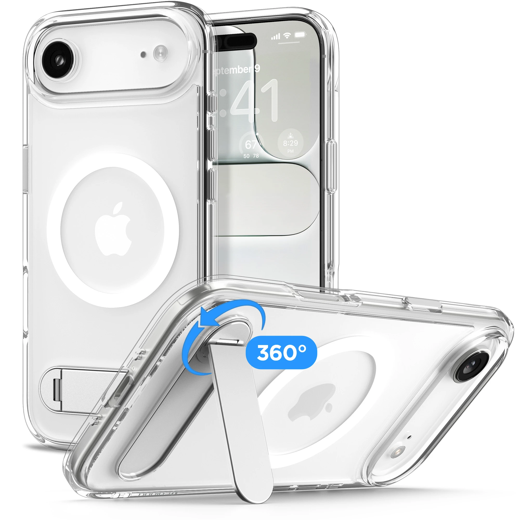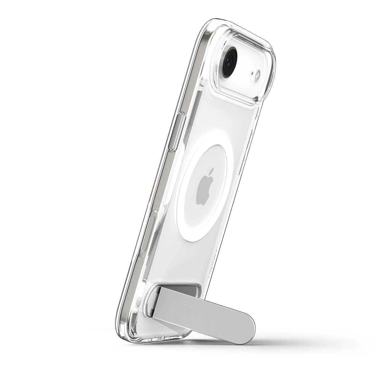 Spigen Ultra Hybrid S MagFit Clear White для iPhone 17 Air — прозорий захисний чохол із жорстким полікарбонатним корпусом, гнучкими TPU-боковинами з технологією Air Cushion та повною підтримкою MagSafe. Вбудована металева підставка забезпечує зручний перегляд відео й комфортні відеодзвінки.