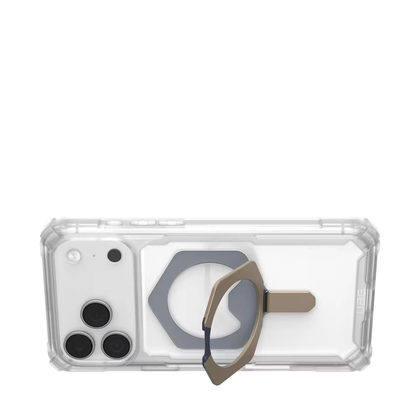 UAG Plasma XTE MagSafe (114528114G36) — прозорий захисний чохол для iPhone 17 Pro Max з титановими акцентами. Ударопоглинаюча композитна конструкція з перфорованою стільниковою структурою всередині, м'якими амортизувальними краями та виступним бортиком для захисту дисплея. Сертифікований за військовим стандартом MIL STD 810G 516.6, вбудований модуль MagSafe та підставка для телефону. Антиковзке покриття, збільшені кнопки, фото без відблисків. Надійний та стильний аксесуар для щоденного використання.