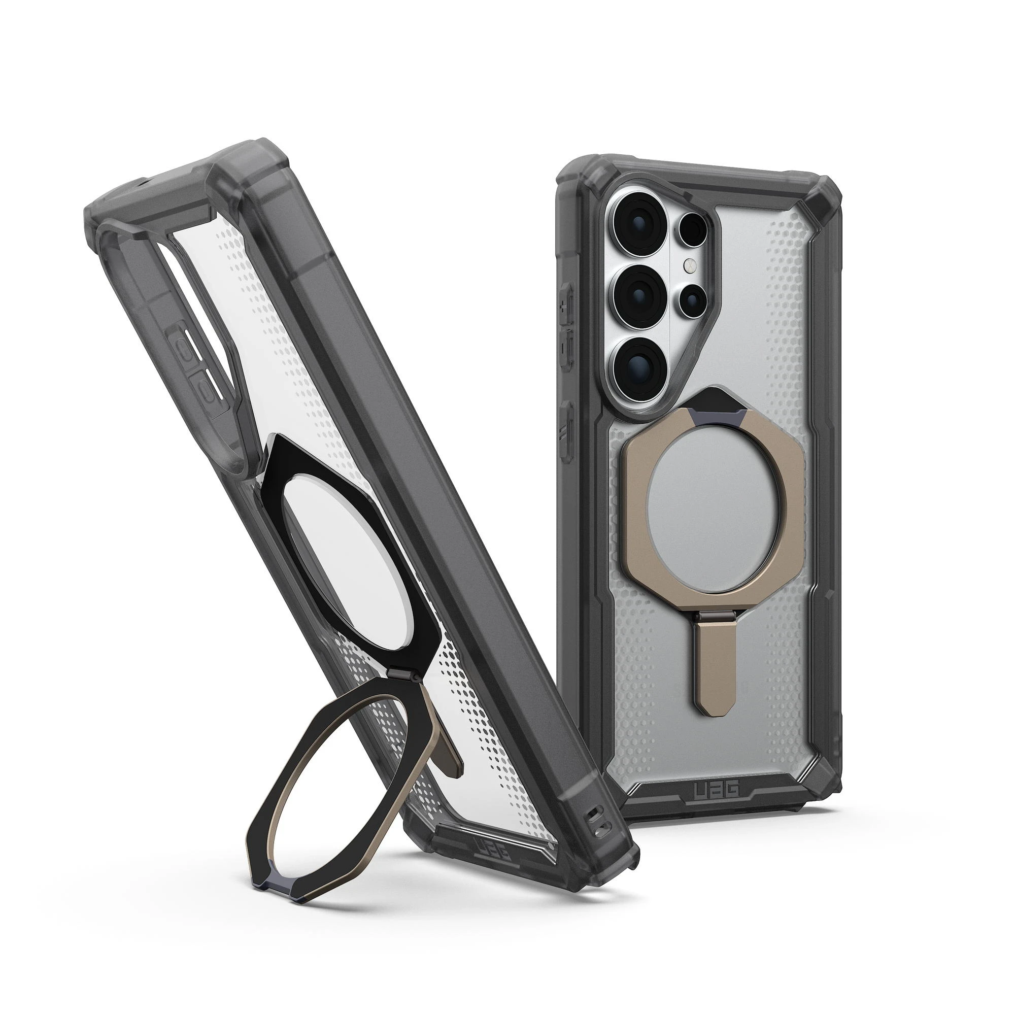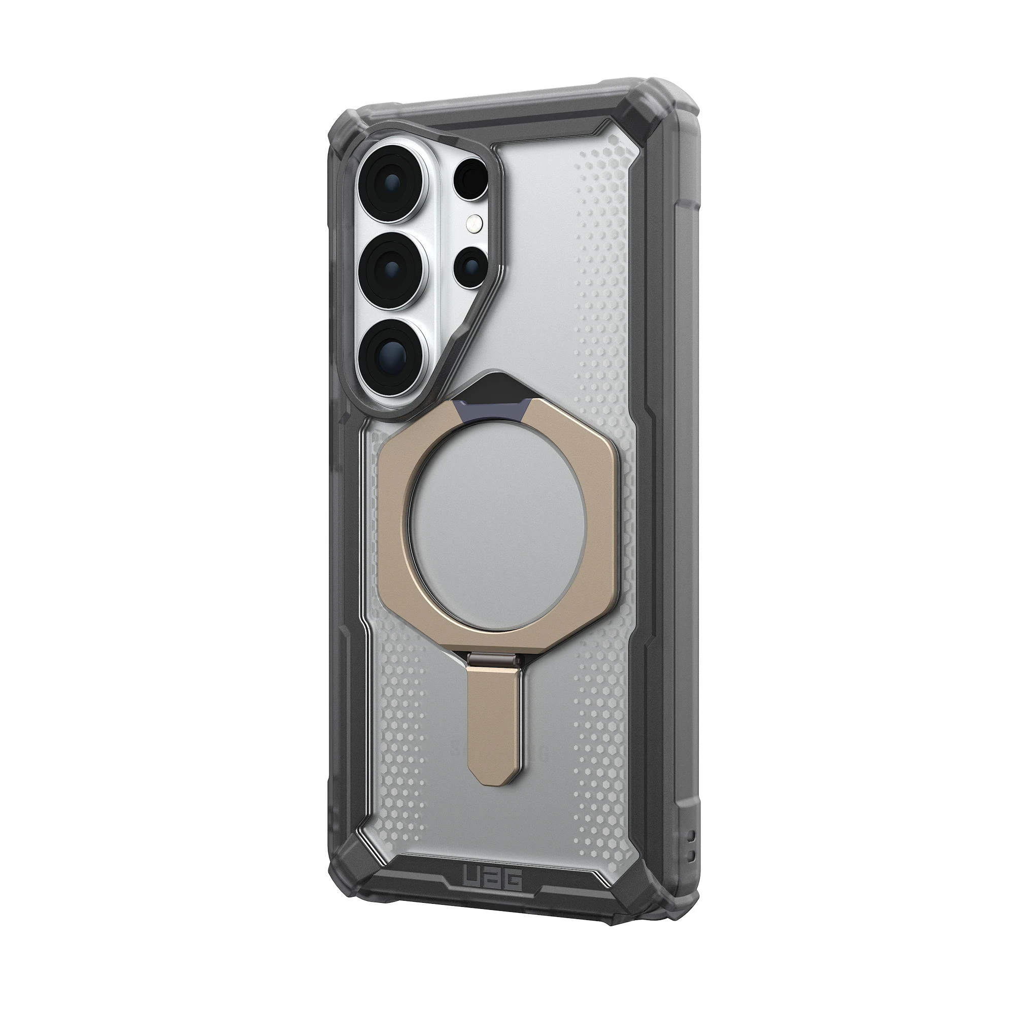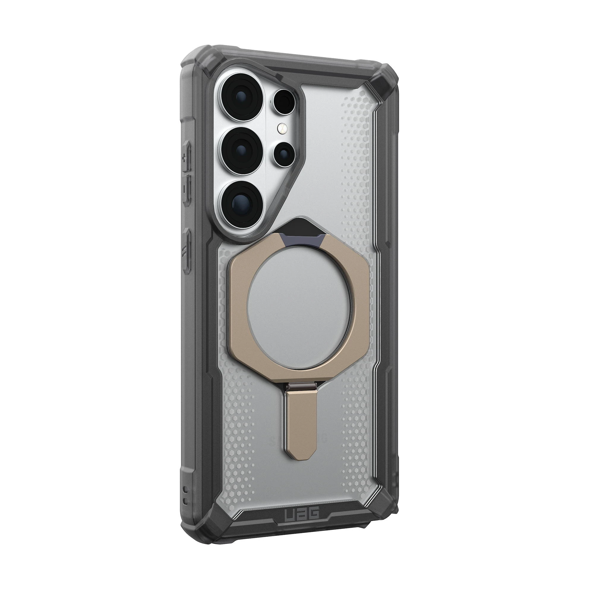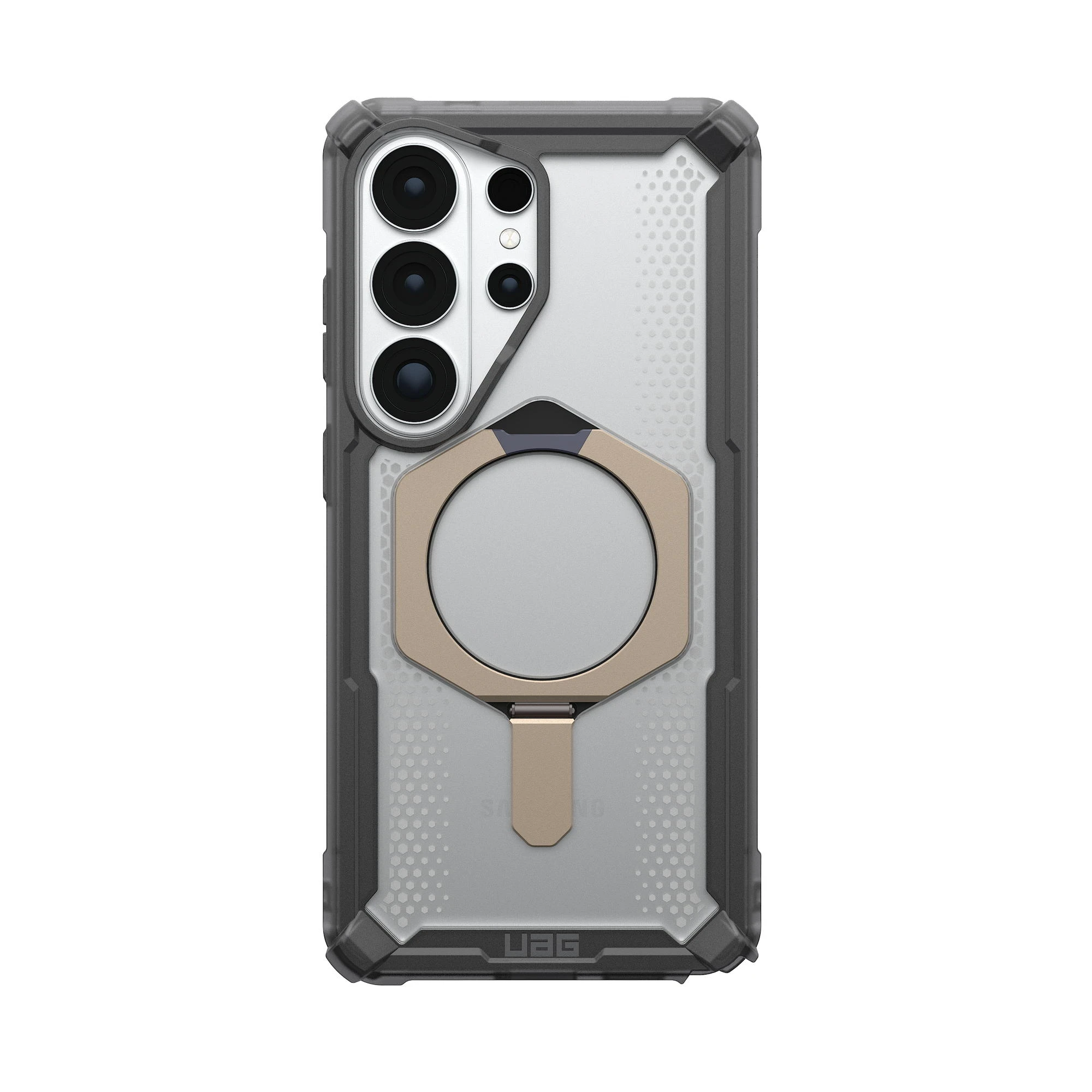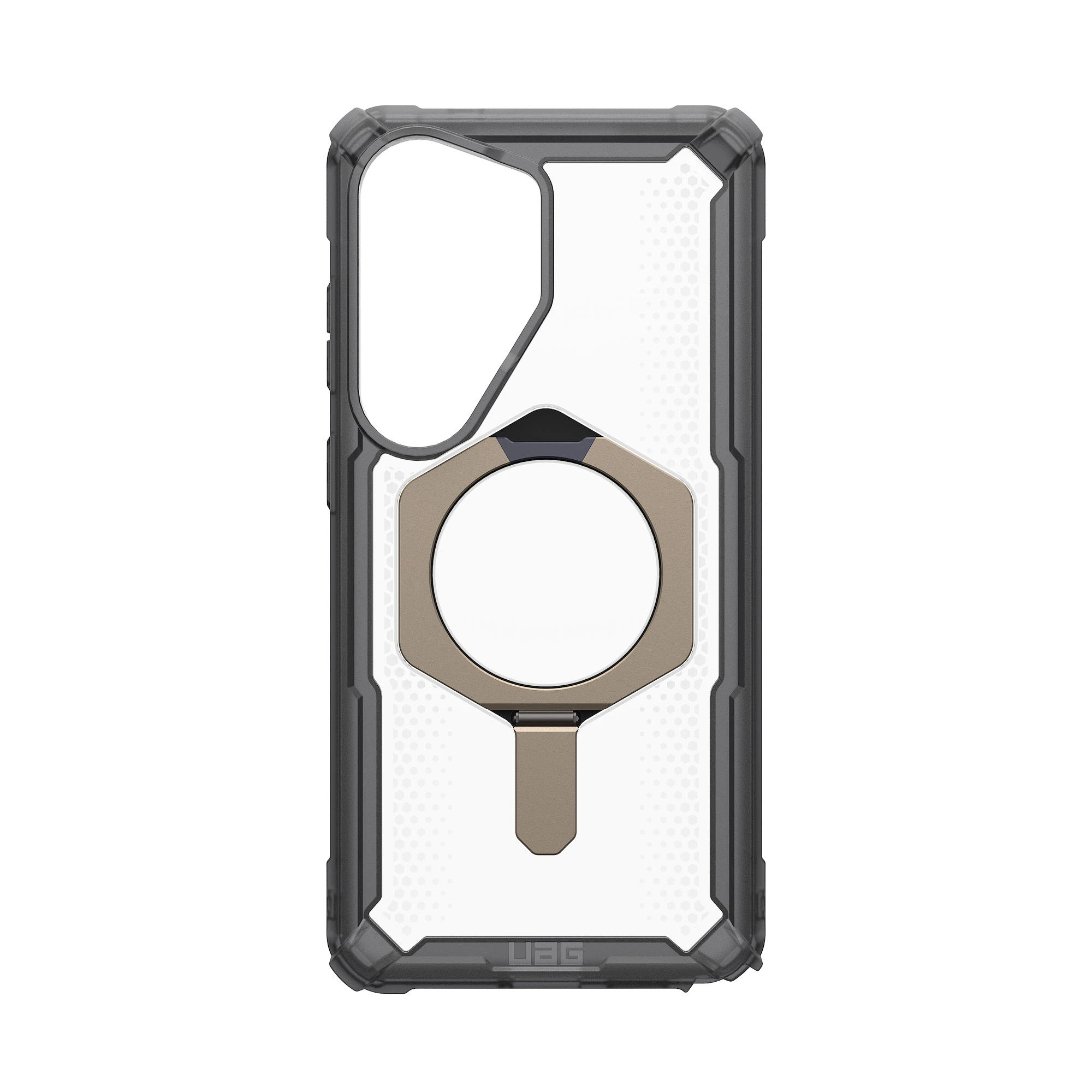 Чохол UAG Plasma XTE with Magnet для Samsung Galaxy S26 Ultra поєднує багаторівневий захист і вбудовану підставку для зручного перегляду контенту. Перфорована стільникова структура ефективно розсіює енергію удару, а виступний бортик захищає дисплей. Вбудований магнітний модуль забезпечує сумісність із бездротовою зарядкою та магнітними аксесуарами. Антиковзні матеріали покращують хват і комфорт під час щоденного використання.