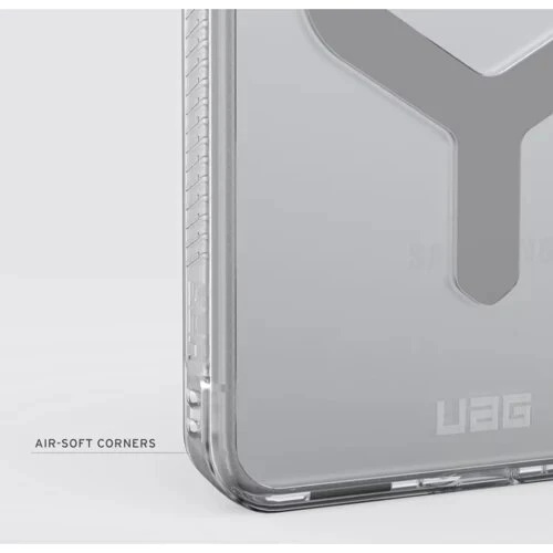 Чохол UAG Plyo with Magnet для Samsung Galaxy S26 Ultra (Ice/Silver) — ультралегкий прозорий захист з вбудованим магнітним модулем для MagSafe-зарядки. Композитна конструкція з м'якими амортизувальними краями та виступним бортиком надійно захищає від ударів, зберігає доступ до портів і кнопок, не спотворює звук і фото.