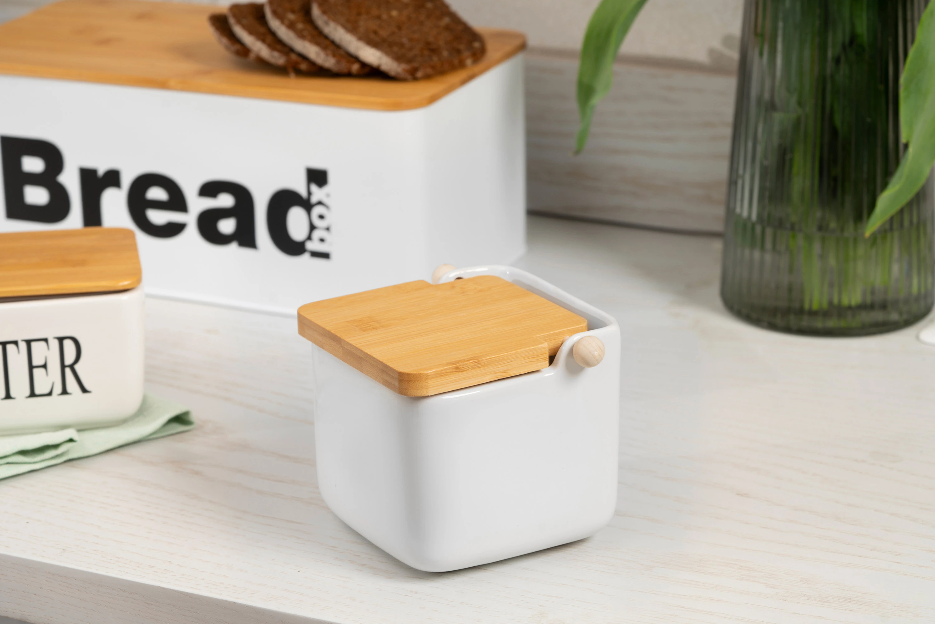Цукорниця Ardesto Midori 12х12х11см, 840мл, кераміка, бамбук, біла