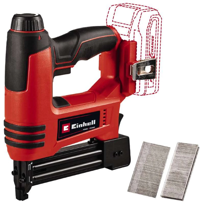 Акумуляторний степлер Einhell TE-CN 18 Li - Solo є ідеальним інструментом для гаража, майстерні та ремісничого приміщення, а також для реставраційних робіт. Комбінація степлера і пістолета з цвяхами дозволяє швидко скріплювати предмети за допомогою скоб і цвяхів. Степлер є пристроєм сімейства Einhell Power X-Change.