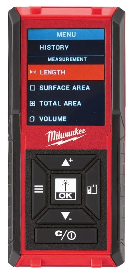 - Комплектация далекомір Milwaukee LDM45; нейлоновий чохол; 2× батарейки AAA; інструкція;