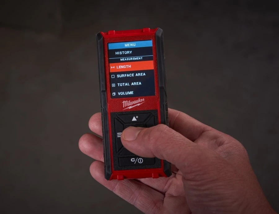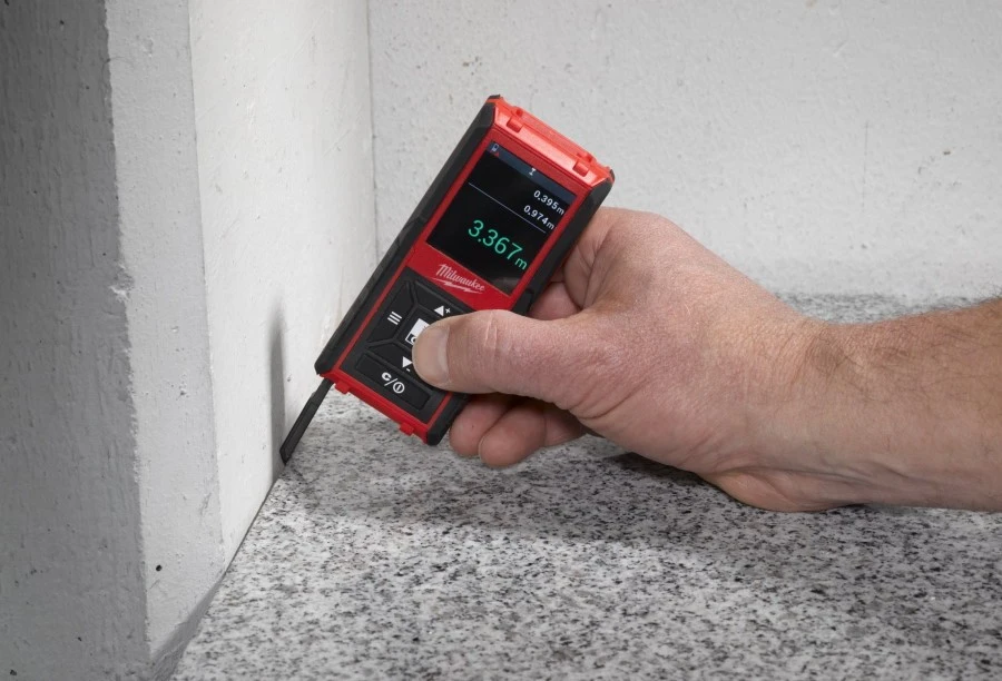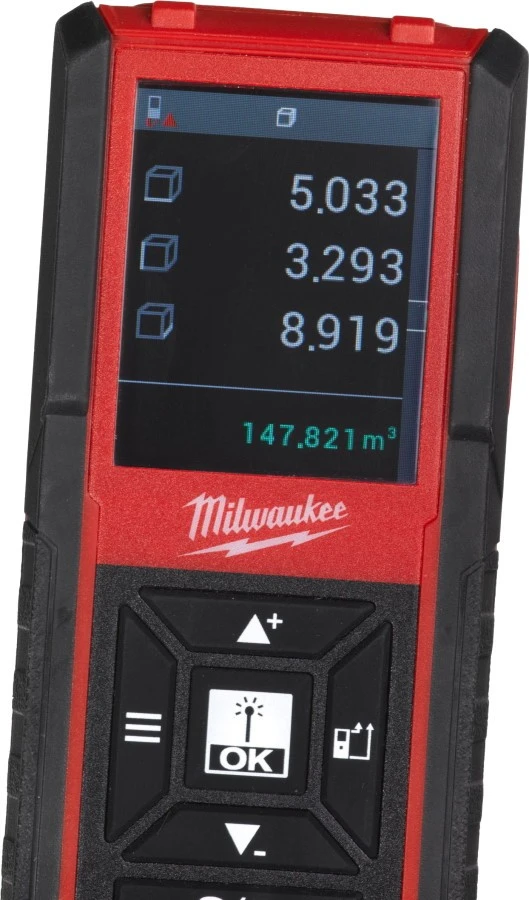 Лазерний далекомір Milwaukee LDM45 вимірює від 0,15 до 45 м з точністю ±1,5 мм. Має великий підсвічуваний дисплей, безперервний трекінг, функції площі та об’єму, пам’ять на 30 вимірювань і відкидну кутову скобу. Захист IP54 і живлення 2×AAA.