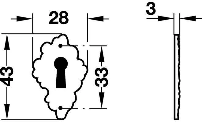 Декоративна накладная під ключ антік 43 х 28 мм 11908106