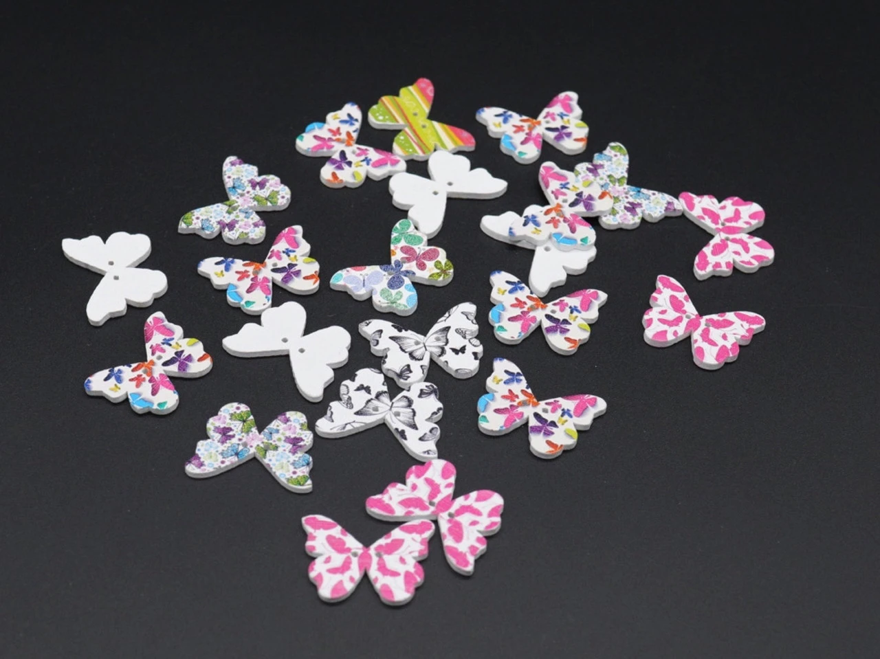 Пуговицы деревянные декоративные, Бабочка, 28х20мм, Цвет «разноцветный»