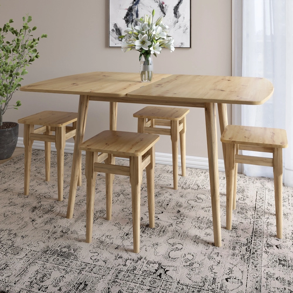 Деревянный раскладной обеденный стол LION Майами-3 Дуб Артизан 90х60/90х120 (LION-041267) ТОПРаскладной обеденный стол LION Майами-3 в благородном оттенке Дуб Артизан сочетает в себе стиль, практичность и надёжность. Благодаря удобному механизму раскладывания стол увеличивается с 90×60 см до 90×120 см, что позволяет комфортно разместить всю родину или гостей. Натуральная древесная текстура придаёт помещению уют и тепло.Изготовленный из прочной ламинированной ДСП производства Swiss Krono, стол устойчив к царапинам, влаге и ежедневным нагрузкам. Надёжные ножки из ДСП обеспечивают стабильность, а универсальный цвет Дуб Артизан легко вписывается в любой интерьер — от классического до современного. Это отличное решение для кухни, гостиной или небольшой столовой.Преимущества модели LION Майами-3Удобный раскладной механизм увеличивает поверхность стола с 90×60 см до 90×120 см.Тёплый оттенок Дуб Артизан придаёт интерьеру естественность и уют.Материал — ламинированная ДСП от Swiss Krono, прочная и устойчивая к повреждениям.Надёжные ножки из ДСП обеспечивают устойчивость и долговечность.Оптимальная высота 74,5 см делает использование максимально комфортным.Компактный размер в сложенном состоянии экономит место и подходит для небольших помещений.Гарантийный срок — 12 месяцев.Характеристики товараВысота, см — 74,5Глубина, см — 60Цвет — Дуб АртизанШирина, см — 120Тип — СтолМатериал корпуса — Ламинированная ДСПМатериал столешницы — Ламинированная ДСПМатериал ножек — ДСПКорпус (каркас) — Ламинированная ДСПТип товара — СтолГарантийный срок — 12 месяцевПроизводитель ЛДСП — Swiss Krono