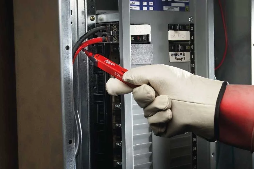Безконтактний детектор напруги Milwaukee 2200-40 (арт. 4932352561) виявляє змінну напругу в діапазоні 50–1000 В. Високий рівень безпеки – CAT IV 1000 В. Оснащений світловими та звуковими сигналами для індикації наявності напруги, кнопкою вкл./викл. і кліпсою для носіння. Працює від 2 батарейок AAA. Вага — 0.4 кг.