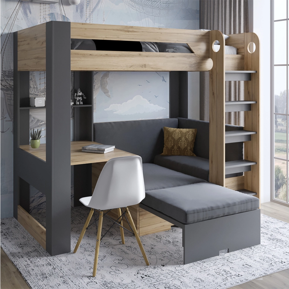 Дитяче двоярусне ліжко LION Флай 90х190 см з вбудованим столом Антрацит/Лілі-95 (LION-041632)