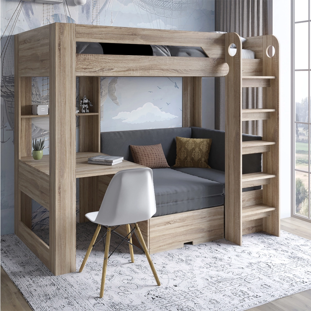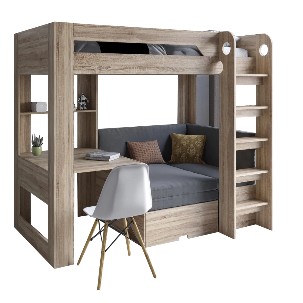 Дитяче двоярусне ліжко LION Флай 90х190 см з вбудованим столом Дуб Сонома трюфель/Лілі-95 (LION-0416