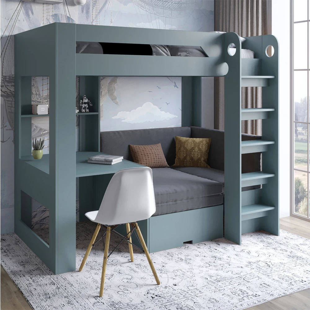 Благодаря двухъярусной конструкции, ваше чадо сможет делить пространство с братом или сестрой, что будет способствовать развитию дружеских отношений. А встроенный стол станет отличным местом для обучения и творчества, где ваш ребенок сможет заниматься любимыми хобби.