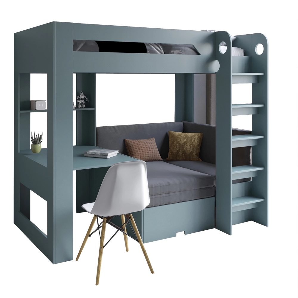 Детская двухъярусная кровать LION Флай 90х190 см со встроенным столом Гранит серый/Лили-95