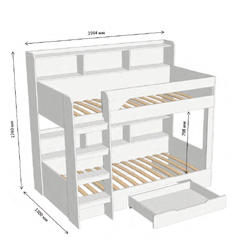 Мечтают ли ваши дети о собственном пространстве для игр и сна? Двухъярусная кровать LION создана специально для активных детей, которые ценят комфорт и стиль. Благодаря продуманной конструкции, удобному доступу на верхний ярус и наличию ящика для хранения, эта кровать станет идеальным решением для любой комнаты.
