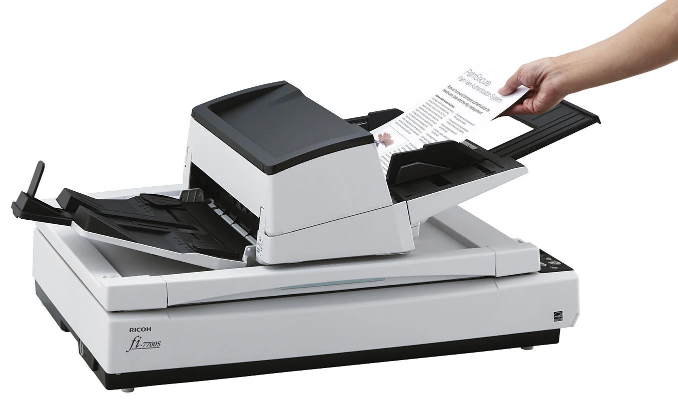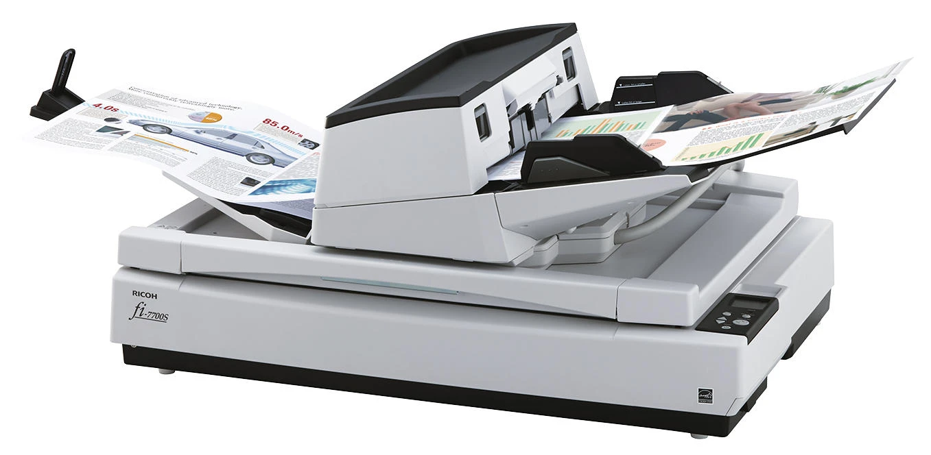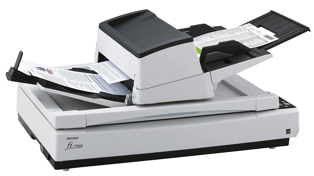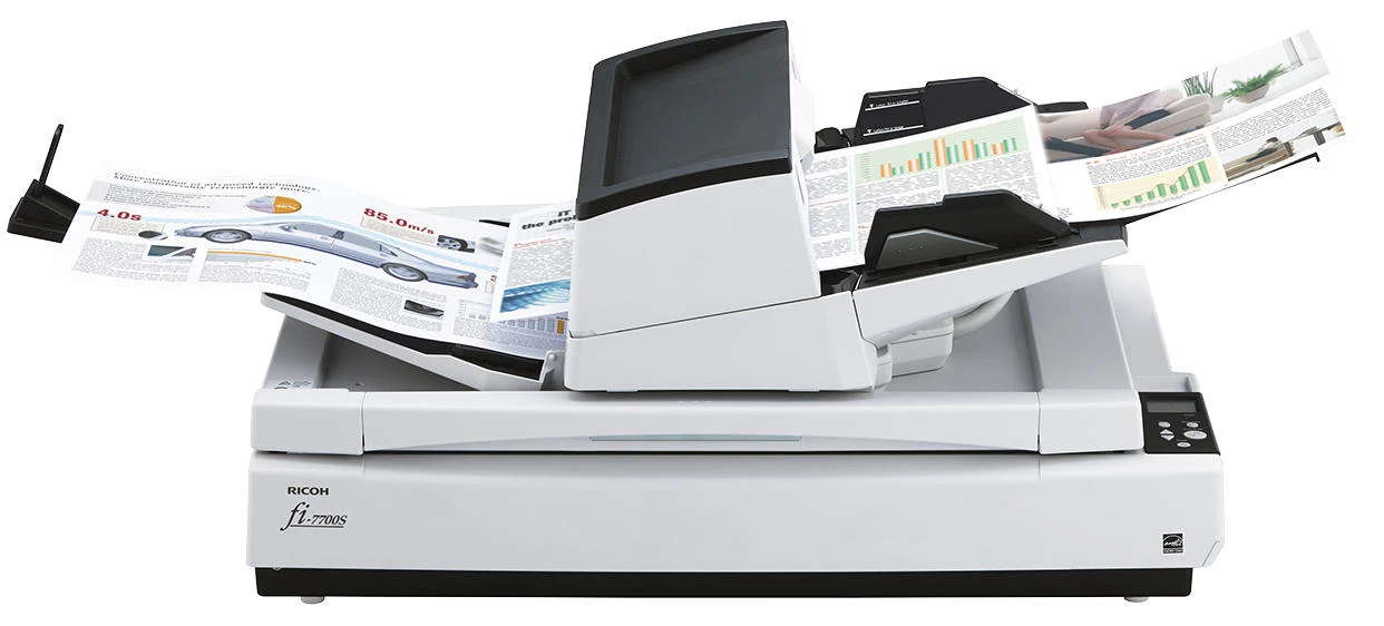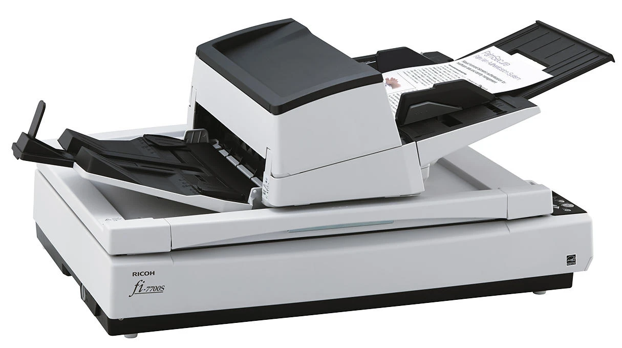 Ricoh fi-7700S — професійний документ-сканер формату A3 з автоподатчиком і планшетним модулем. Пристрій призначений для одностороннього сканування та підтримує роботу з різними типами паперу і носіїв. Висока швидкість обробки сторінок дозволяє ефективно цифровізувати офісні та архівні матеріали. Світлодіодне підсвічування і програмні інструменти обробки зображень забезпечують стабільну якість сканів. Сканер орієнтований на інтенсивне щоденне використання.