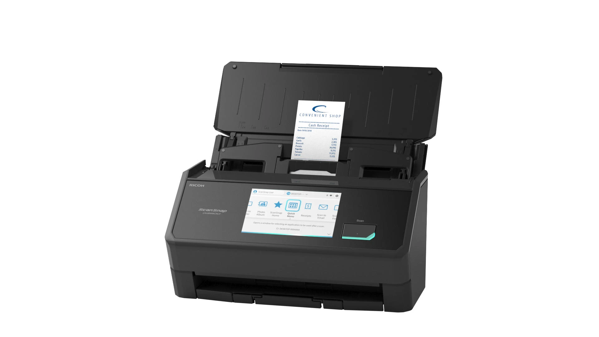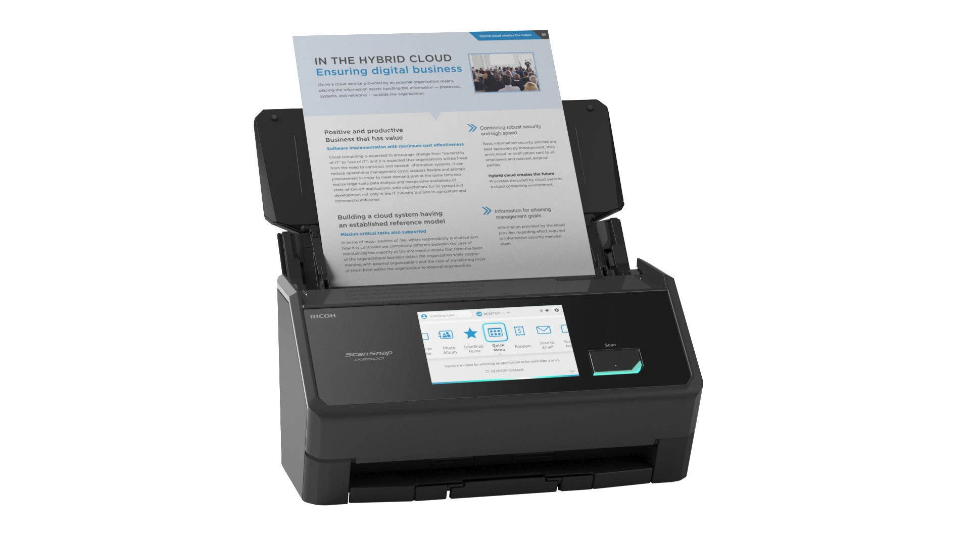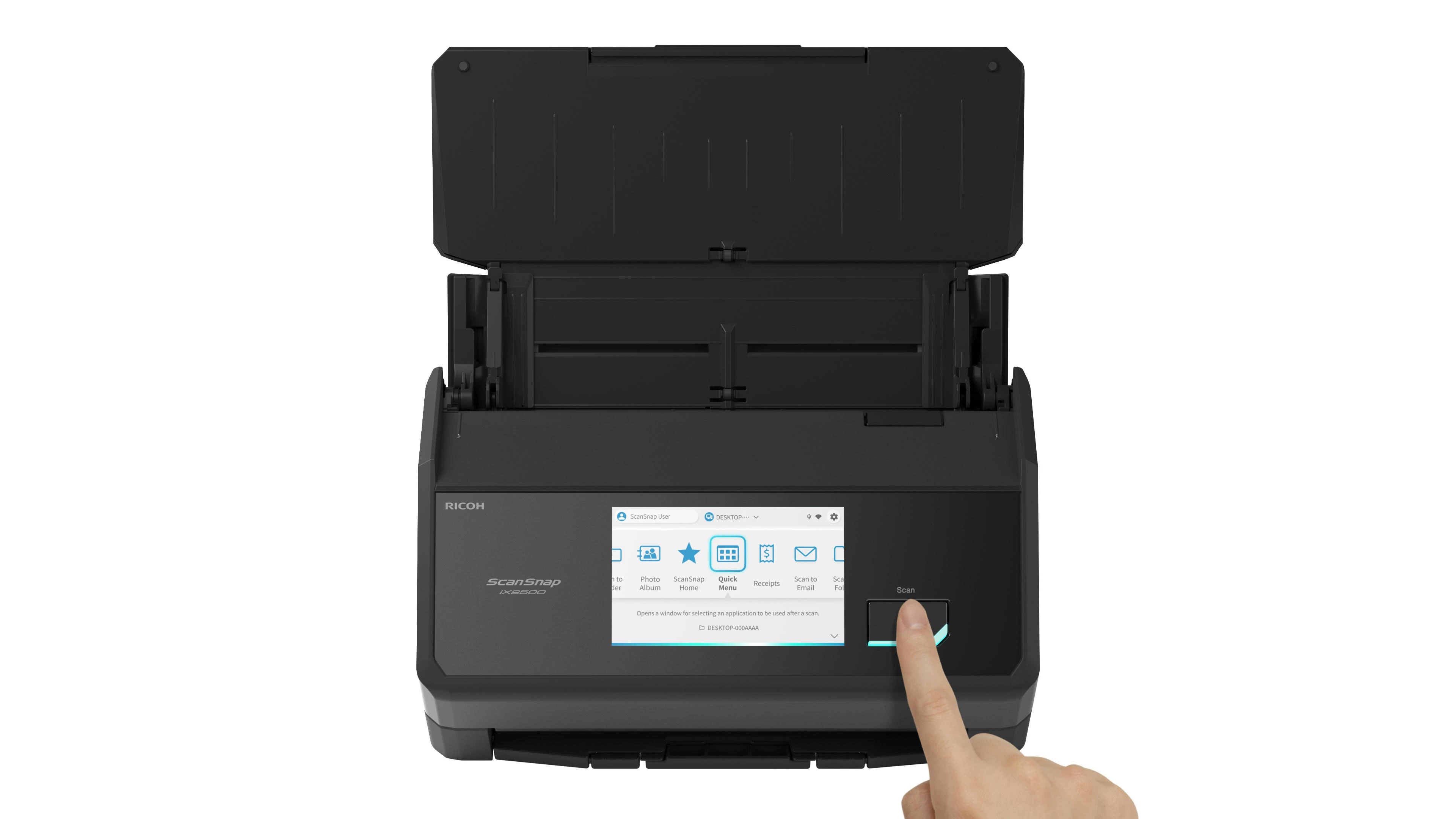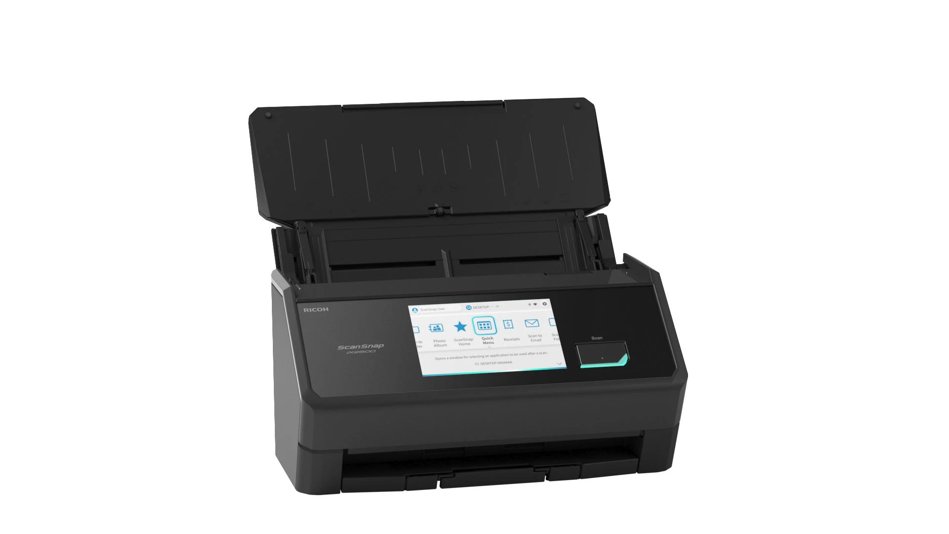 Ricoh ScanSnap iX2500 – настільний протяжний сканер формату A4 зі швидкістю до 45 сторінок за хвилину. Оснащений автоматичним подавачем документів із двостороннім скануванням. Сенсорний екран спрощує керування функціями. Підключення через Wi-Fi 6, USB 3.2 та Bluetooth 5.2 розширює варіанти інтеграції в робоче середовище.