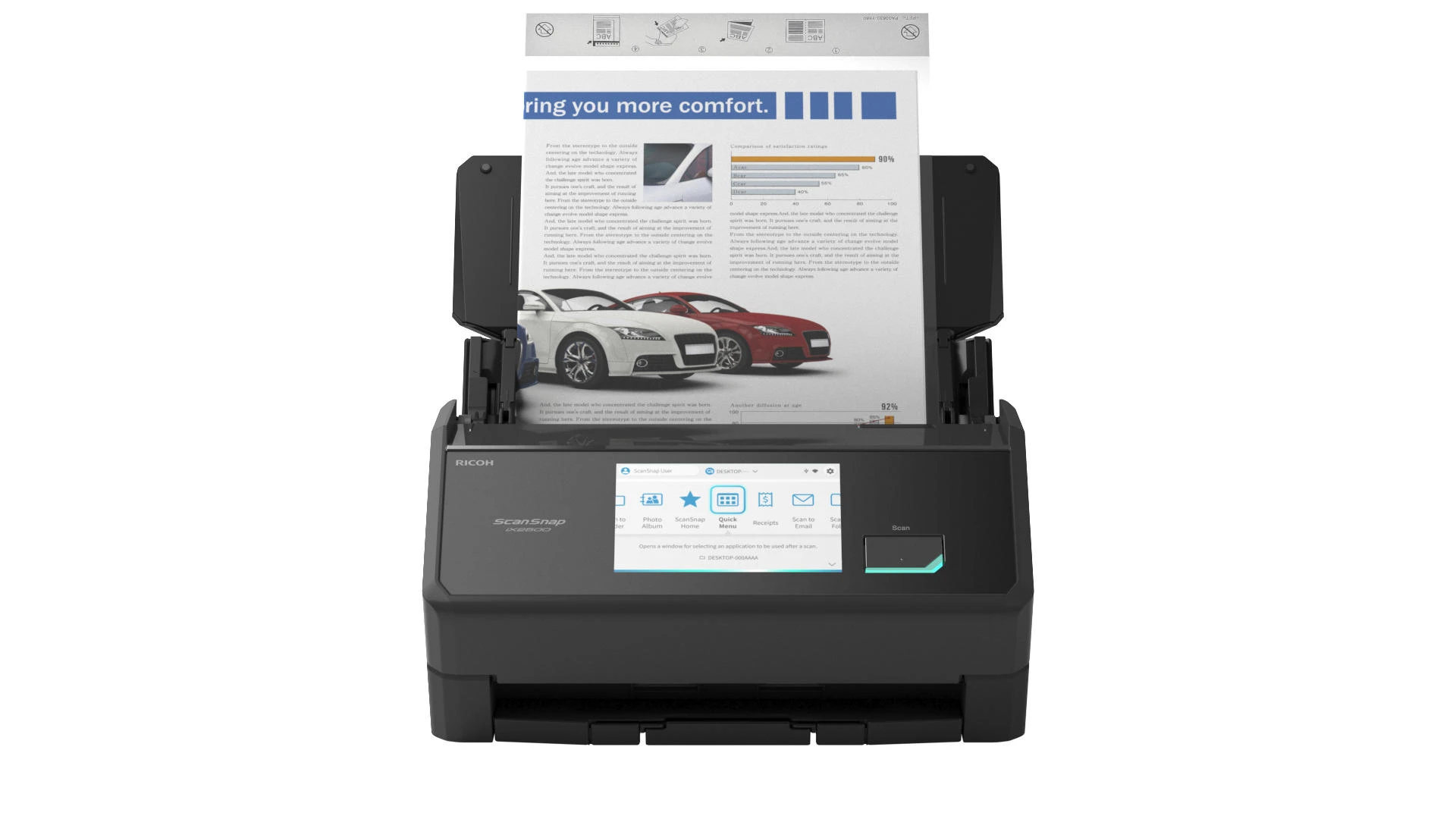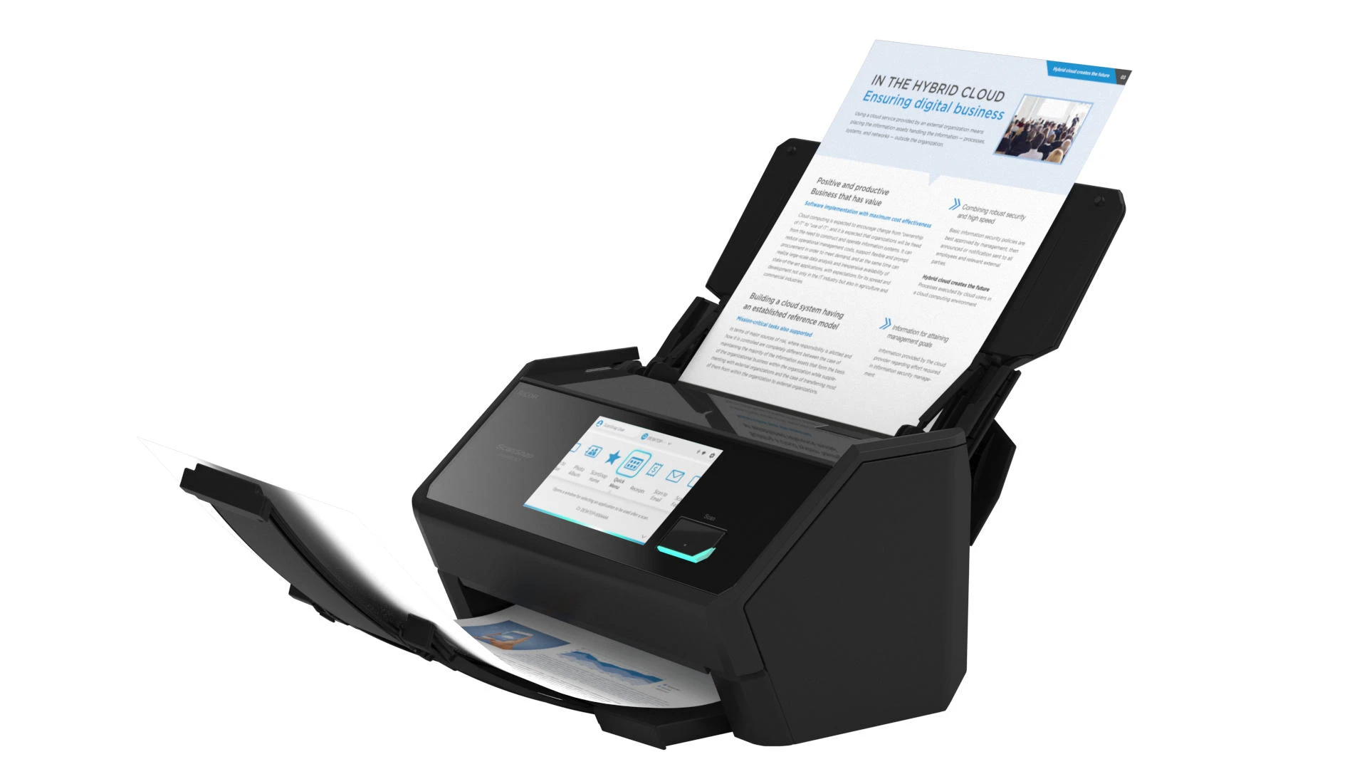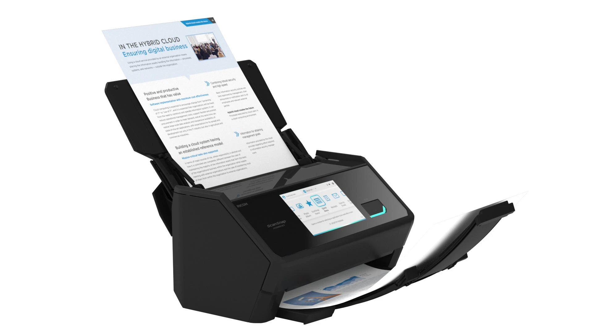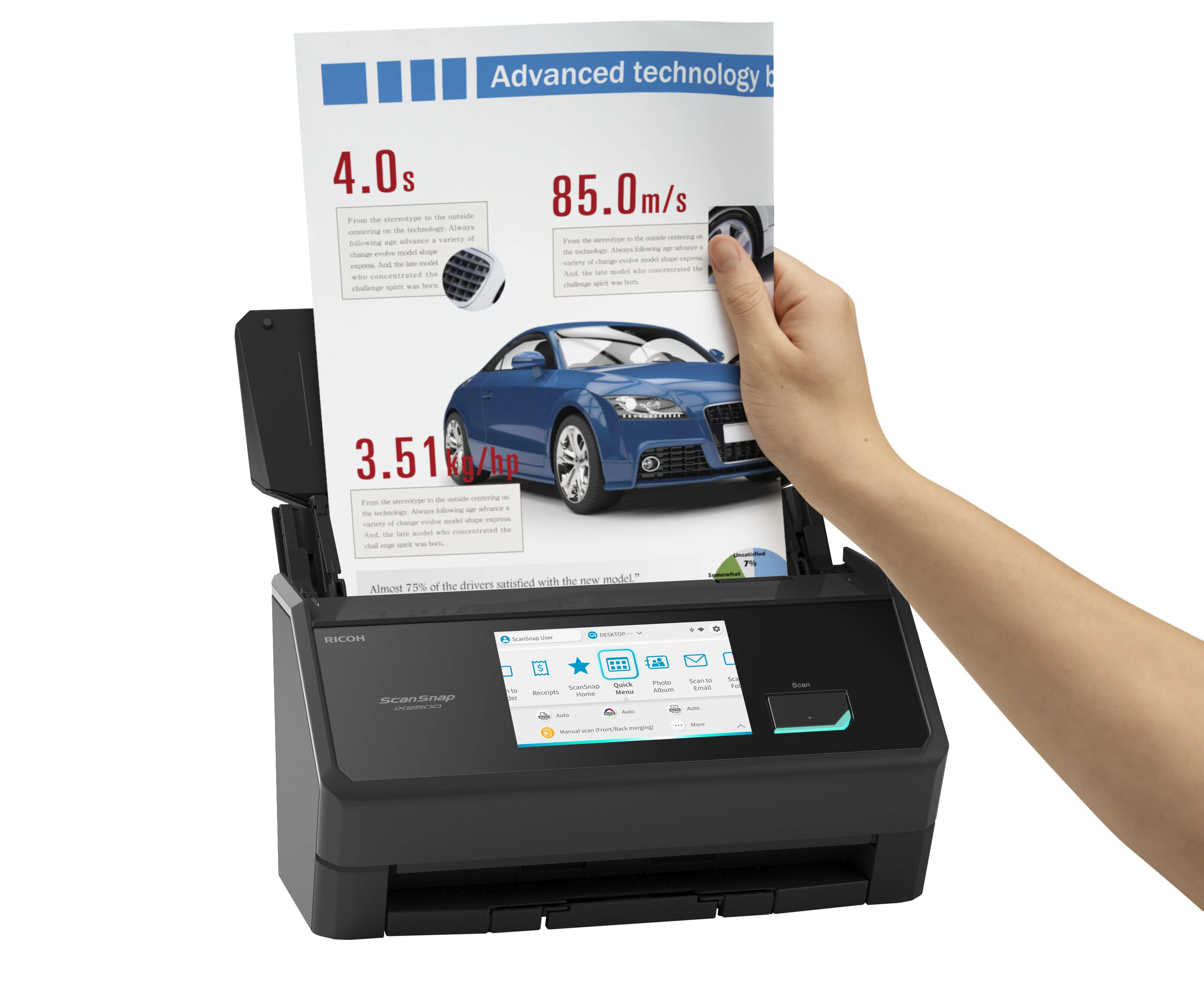 Ricoh ScanSnap iX2500 – настільний протяжний сканер формату A4 зі швидкістю до 45 сторінок за хвилину. Оснащений автоматичним подавачем документів із двостороннім скануванням. Сенсорний екран спрощує керування функціями. Підключення через Wi-Fi 6, USB 3.2 та Bluetooth 5.2 розширює варіанти інтеграції в робоче середовище.