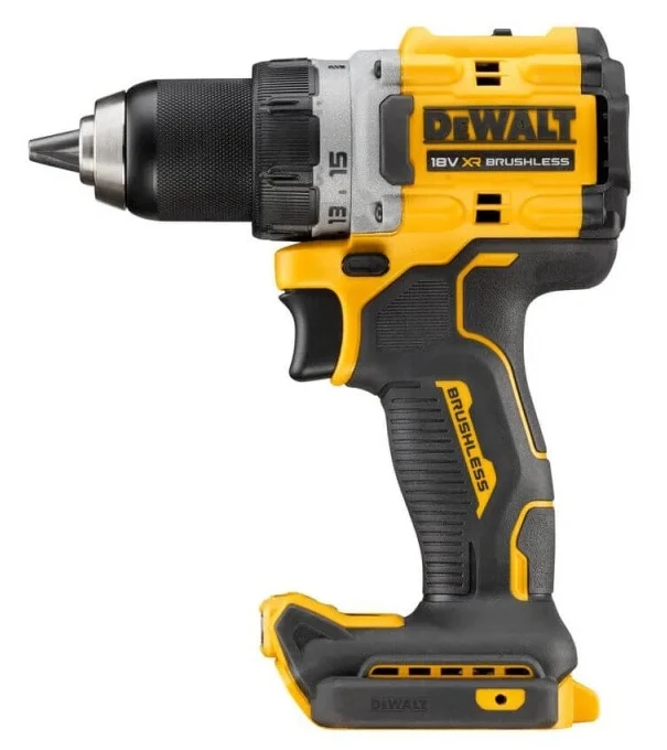 Дриль-шурупокрут DeWalt DCD800NT працює на платформі XR Li-Ion 18 В та оснащений безщітковим двигуном. Крутний момент 90 Нм у поєднанні з двошвидкісним редуктором охоплює свердління та закручування. Діапазони 0–650 і 0–2000 об/хв забезпечують контроль під різні матеріали. Швидкозатискний патрон 13 мм фіксує оснащення стабільно. Маса 1,28 кг і компактний корпус зручні для робіт у складних умовах.