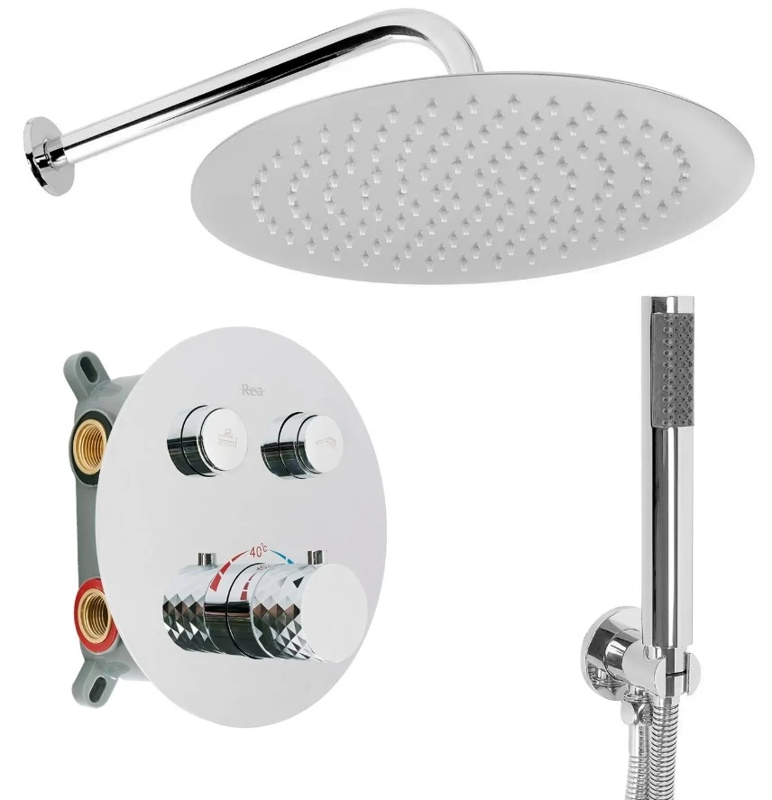 душевая система Rea Lungo Diamond+box скрытого монтажа, с термостатом, chrome (REA-P6967)