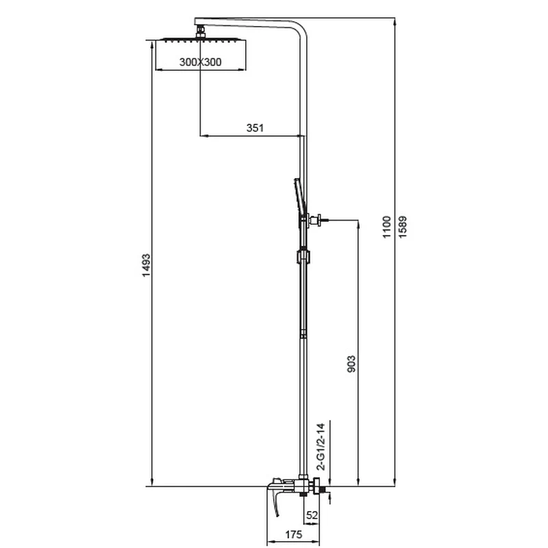- Комплектация Шланг 150 см, ручна лійка, стельова лійка 300х300 мм, чашки, ексцентрики, гумові прокладки, тримач д