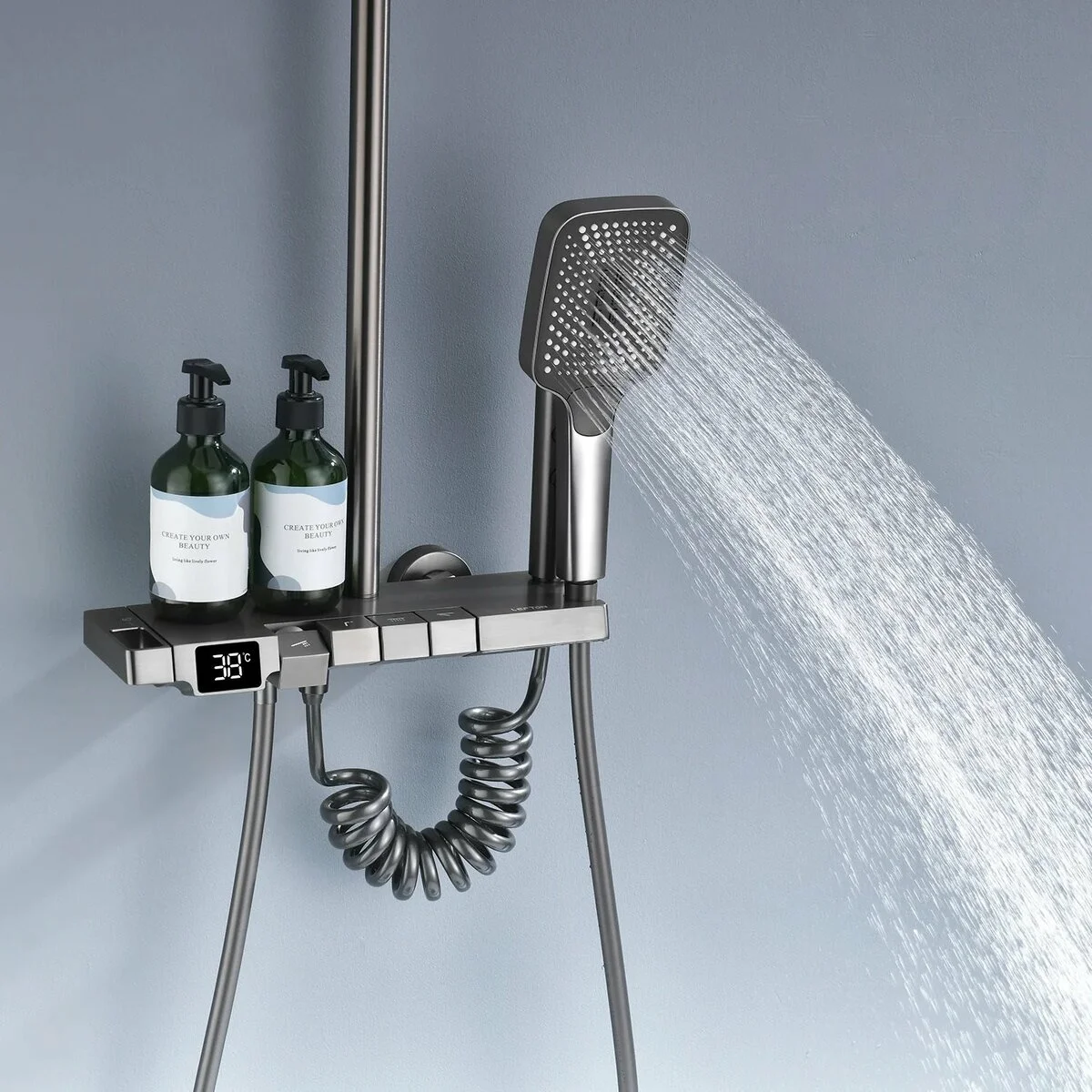 - 4-в-1 функціональність: Ця душова колона поєднує в собі дощовий душ, ручний душ, розпилювач та потік води для різних потреб та насолоди водними процедурами.