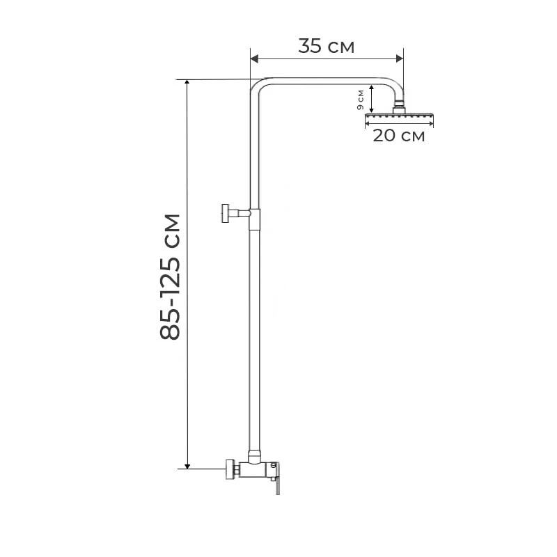 - Особенности Розміри стельової лійки: 20х20 см. Максимальна висота 125 см. Мінімальна 85 см.