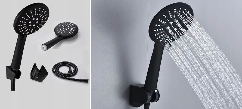 душова лійка Rea + шланг + тримач, чорна (REA-P4101)