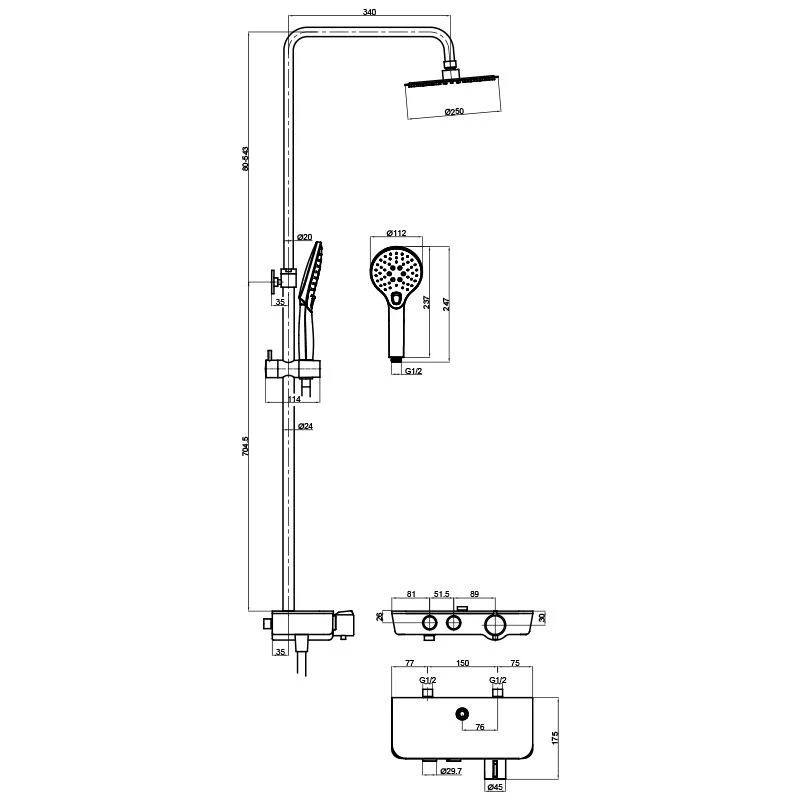 душова система Lavita Cetus Cubic з термостатом, хром (5900378346296)